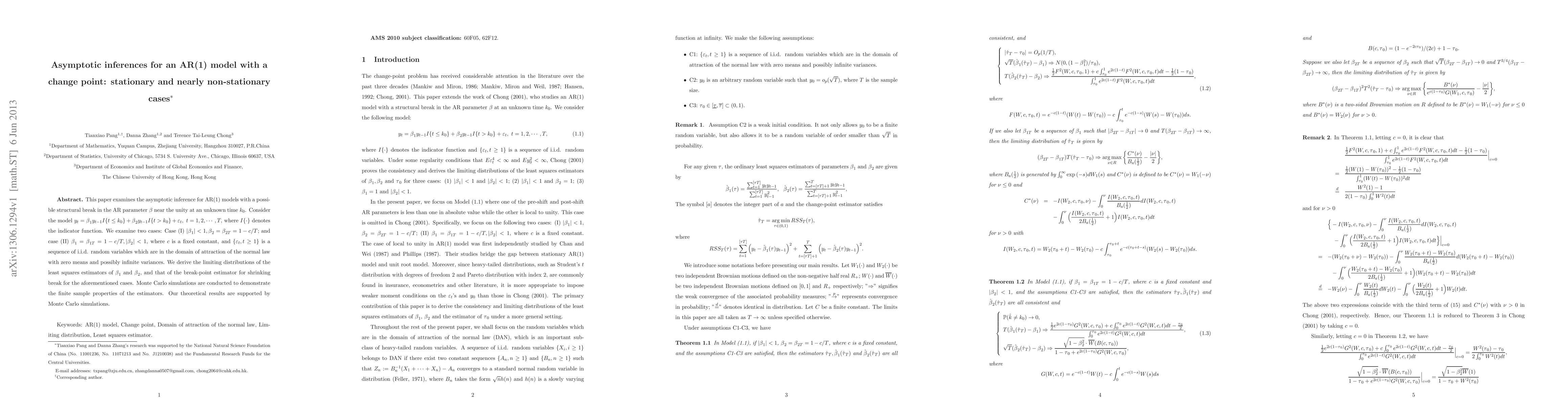 This paper investigates asymptotic inference for AR(1) models with a structural break in the AR parameter near unity, considering both stationary and nearly non-stationary cases. It derives the limiting distributions of least squares estimators and break-point estimators, validated by Monte Carlo simulations.
