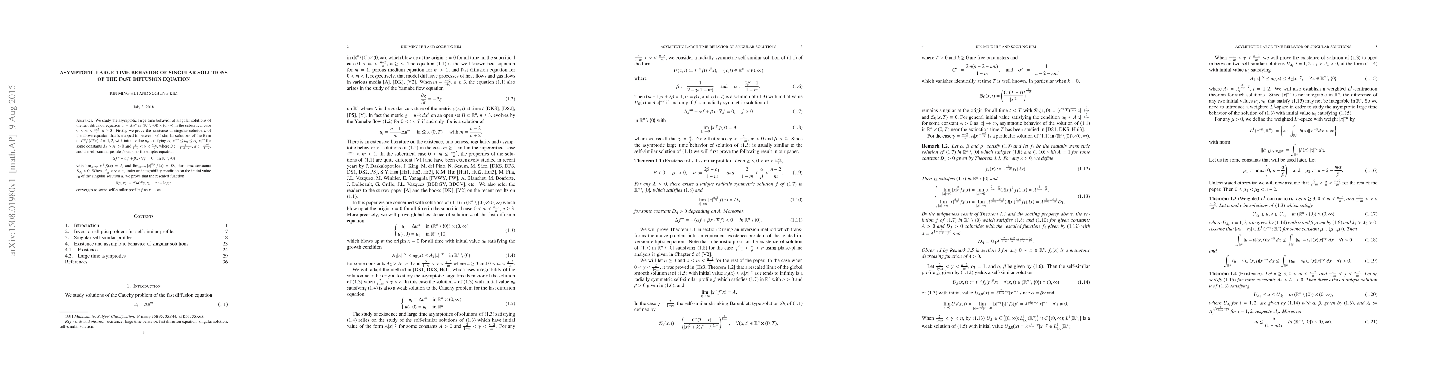 We study the asymptotic large time behavior of singular solutions of the fast