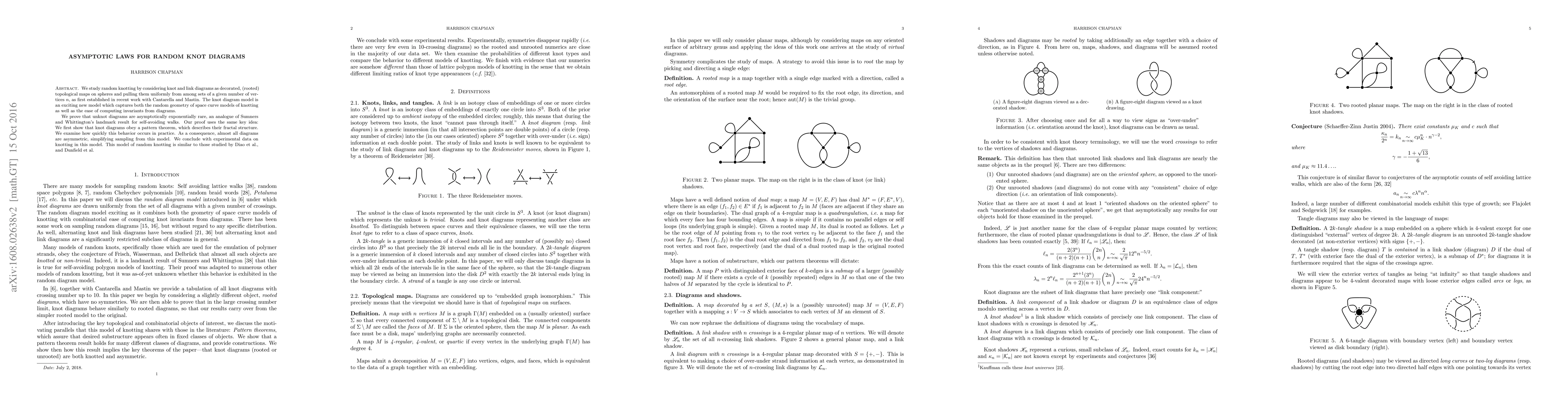 The paper introduces a new knot diagram model and proves asymptotic laws for random knot diagrams, demonstrating that unknot diagrams are exponentially rare and almost all diagrams are asymmetric.