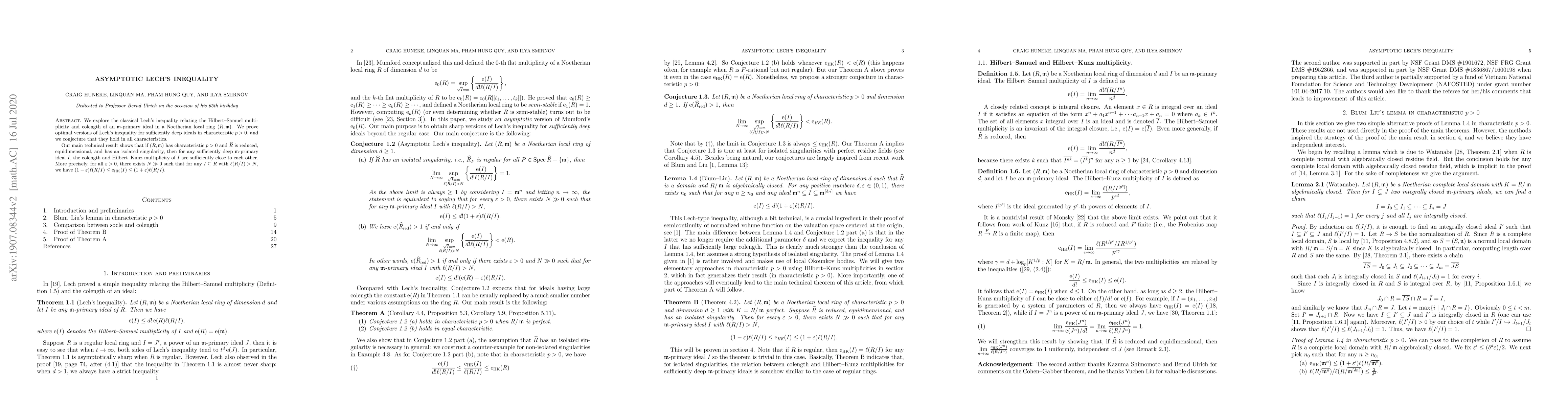 We explore the classical Lech's inequality relating the Hilbert--Samuel multiplicity and colength of an $\mathfrak{m}$-primary ideal in a Noetherian local ring $(R,\mathfrak{m})$. We prove optimal versions of Lech's inequality for sufficiently deep ideals in characteristic $p>0$, and we conjecture that they hold in all characteristics. Our main technical result shows that if $(R,\mathfrak{m})$ has characteristic $p>0$ and $\widehat{R}$ is reduced, equidimensional, and has an isolated singularity, then for any sufficiently deep $\mathfrak{m}$-primary ideal $I$, the colength and Hilbert--Kunz multiplicity of $I$ are sufficiently close to each other. More precisely, for all $\varepsilon>0$, there exists $N\gg0$ such that for any $I\subseteq R$ with $l(R/I)>N$, we have $(1-\varepsilon)l(R/I)\leq e_{HK}(I)\leq(1+\varepsilon)l(R/I)$.