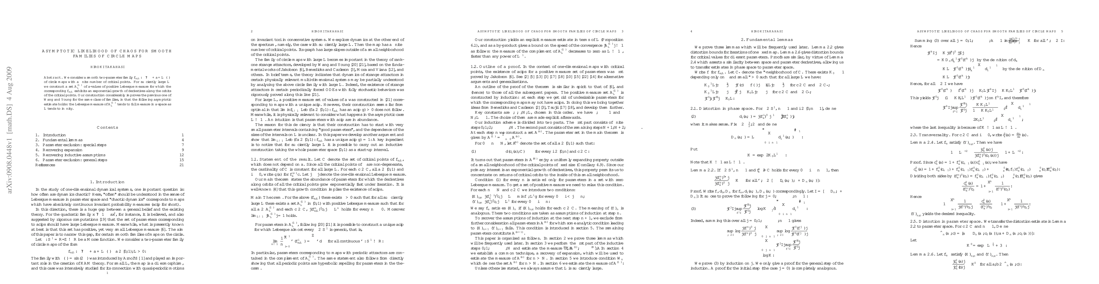 This paper investigates the asymptotic likelihood of chaos in smooth two-parameter families of circle maps, showing that for large parameters, a set of $a$-values with positive Lebesgue measure leads to exponential growth of derivatives along critical orbits. The construction improves upon previous methods, achieving full measure in $a$-space as the parameter tends to infinity.