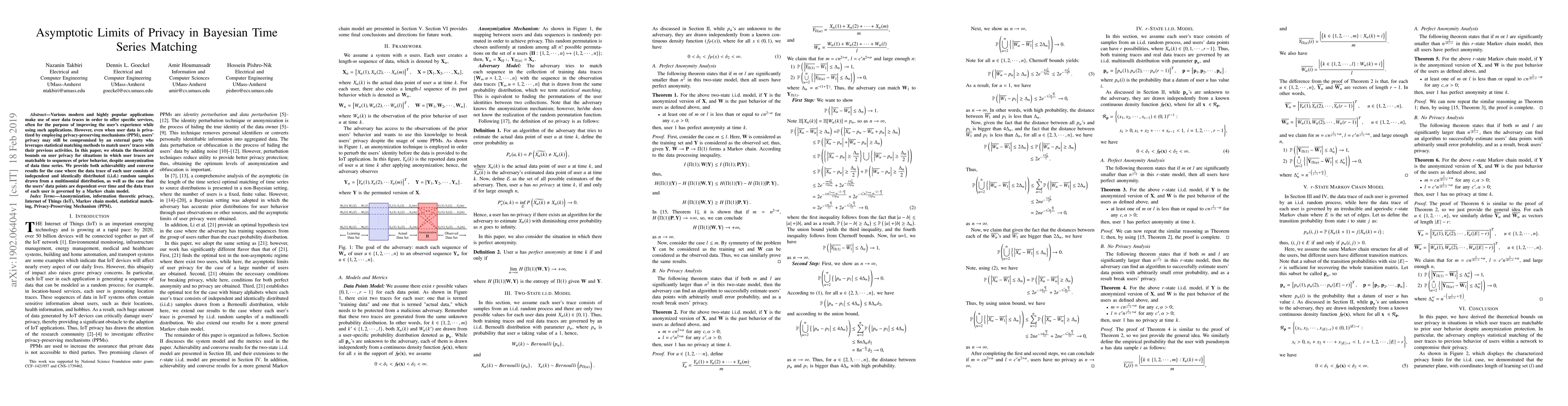 Various modern and highly popular applications make use of user data traces in order to offer specific services, often for the purpose of improving the user's experience while using such applications. However, even when user data is privatized by employing privacy-preserving mechanisms (PPM), users' privacy may still be compromised by an external party who leverages statistical matching methods to match users' traces with their previous activities. In this paper, we obtain the theoretical bounds on user privacy for situations in which user traces are matchable to sequences of prior behavior, despite anonymization of data time series. We provide both achievability and converse results for the case where the data trace of each user consists of independent and identically distributed (i.i.d.) random samples drawn from a multinomial distribution, as well as the case that the users' data points are dependent over time and the data trace of each user is governed by a Markov chain model.
