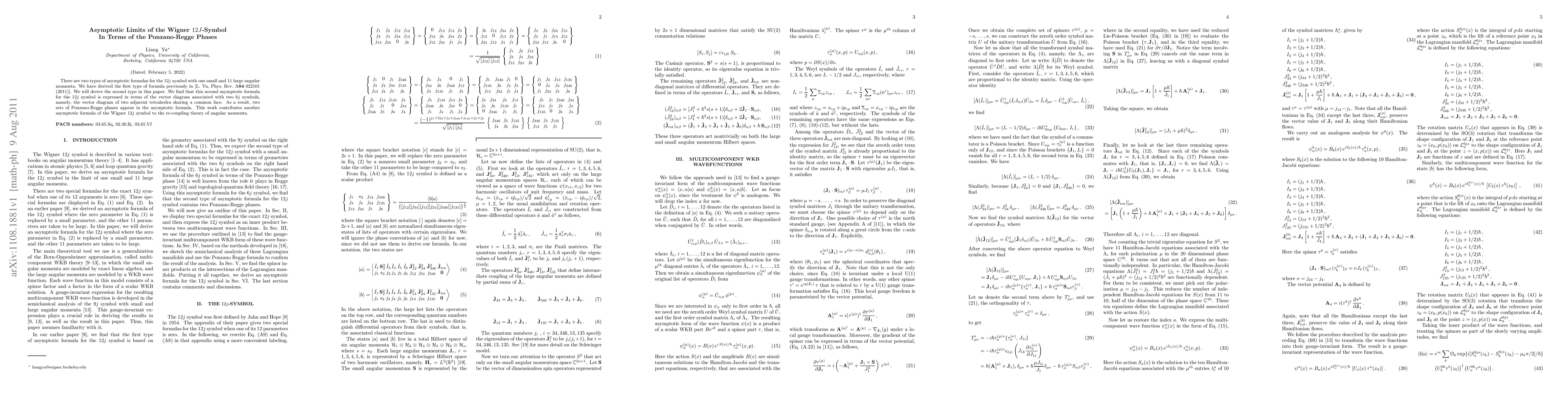 The paper presents a novel asymptotic formula for the Wigner 12J-symbol, expressed using Ponzano-Regge phases and vector diagrams of tetrahedra, advancing the re-coupling theory of angular momenta.