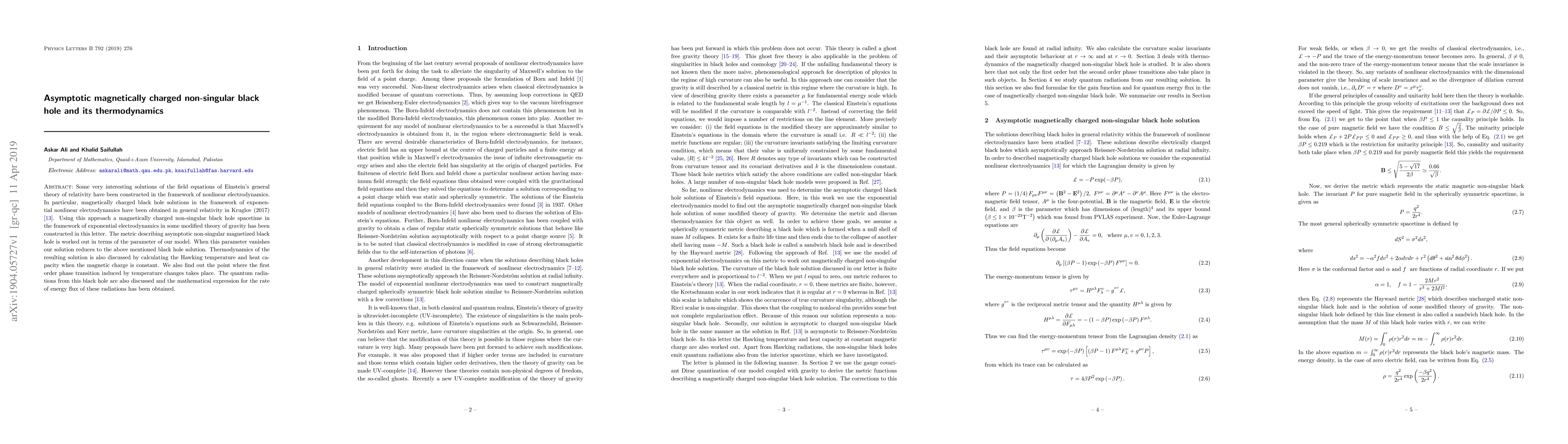Some very interesting solutions of the field equations of Einstein's general theory of relativity have been constructed in the framework of nonlinear electrodynamics. In particular, magnetically charged black hole solutions in the framework of exponential nonlinear electrodynamics have been obtained in general relativity in Kruglov (2017). Using this approach a magnetically charged non-singular black hole spacetime in the framework of exponential electrodynamics in some modified theory of gravity has been constructed in this letter. The metric describing asymptotic non-singular magnetized black hole is worked out in terms of the parameter of our model. When this parameter vanishes our solution reduces to the above mentioned black hole solution. Thermodynamics of the resulting solution is also discussed by calculating the Hawking temperature and heat capacity when the magnetic charge is constant. We also find out the point where the first order phase transition induced by temperature changes takes place. The quantum radiations from this black hole are also discussed and the mathematical expression for the rate of energy flux of these radiations has been obtained.