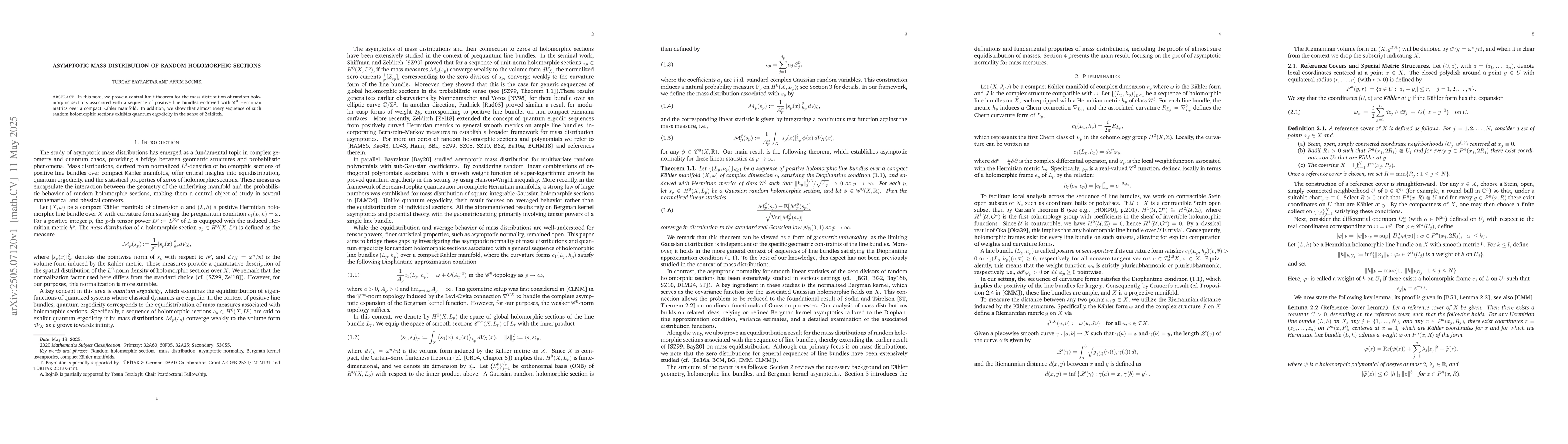 The paper establishes a connection between random matrix theory and complex geometry, proving a central limit theorem for holomorphic sections in Kähler settings.