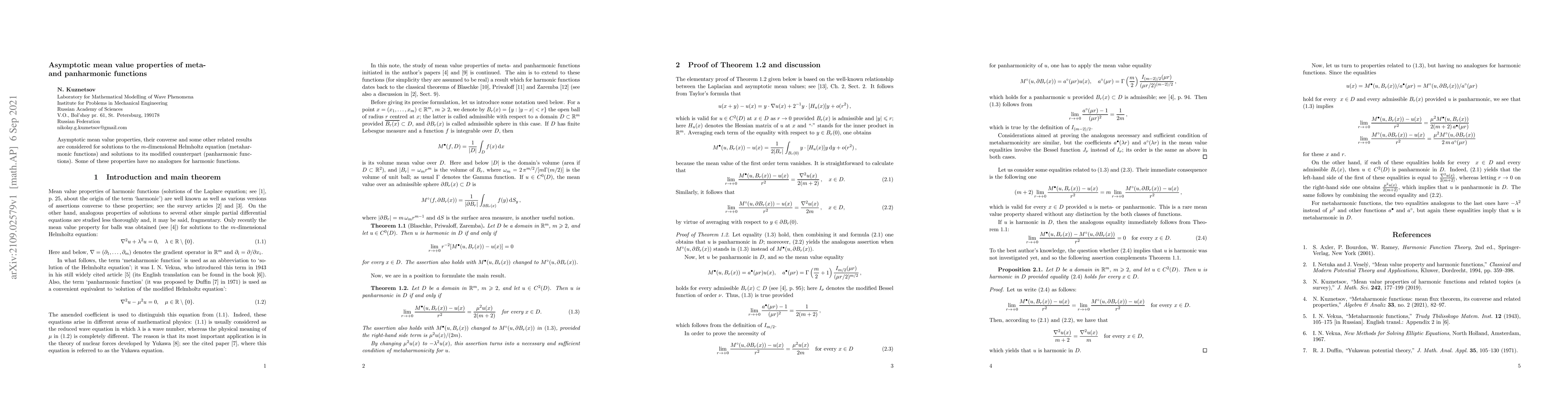 This paper investigates asymptotic mean value properties for metaharmonic and panharmonic functions, revealing unique characteristics compared to harmonic functions, including non-analogous properties for solutions to the $m$-dimensional Helmholtz equation.