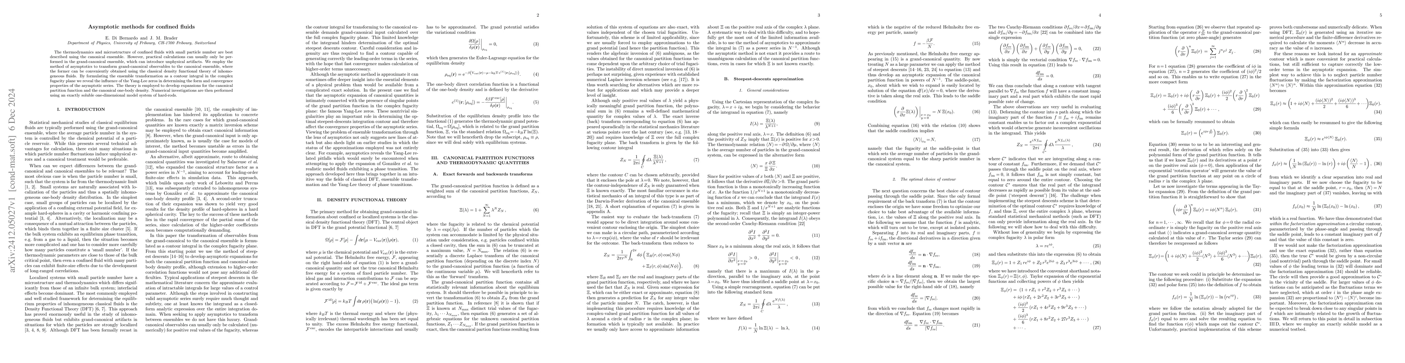 This paper addresses the challenges of modeling confined fluids with small particle numbers by transforming grand-canonical observables into the canonical ensemble through asymptotic methods. It formulates the ensemble transformation as a contour integral and explores the impact of Yang-Lee zeros, ultimately developing expansions for the canonical partition function and density, validated with a one-dimensional hard-rod model.