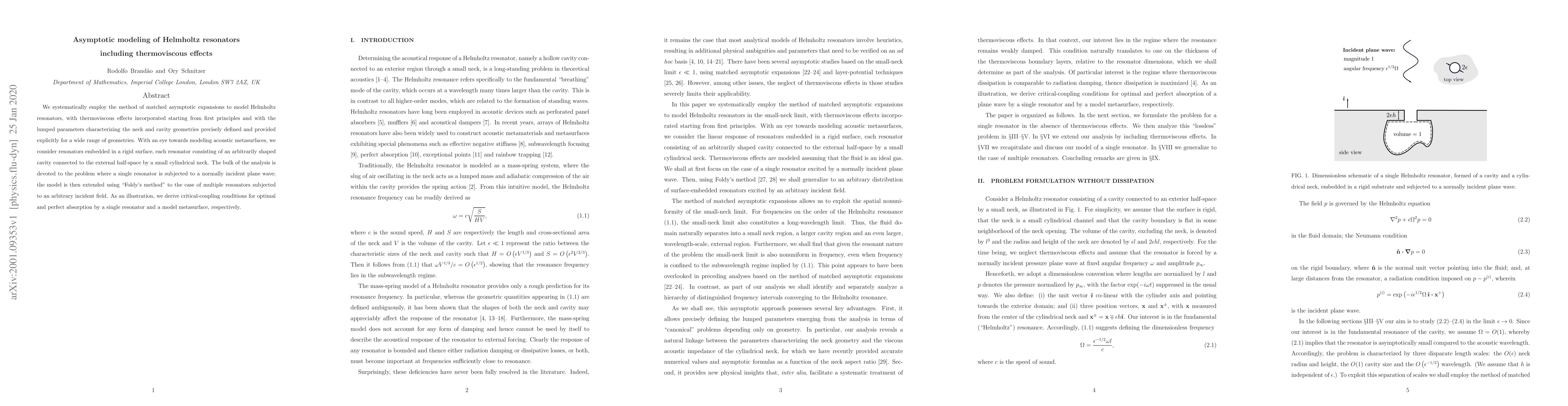 We systematically employ the method of matched asymptotic expansions to model Helmholtz resonators, with thermoviscous effects incorporated starting from first principles and with the lumped parameters characterizing the neck and cavity geometries precisely defined and provided explicitly for a wide range of geometries. With an eye towards modeling acoustic metasurfaces, we consider resonators embedded in a rigid surface, each resonator consisting of an arbitrarily shaped cavity connected to the external half-space by a small cylindrical neck. The bulk of the analysis is devoted to the problem where a single resonator is subjected to a normally incident plane wave; the model is then extended using "Foldy's method" to the case of multiple resonators subjected to an arbitrary incident field. As an illustration, we derive critical-coupling conditions for optimal and perfect absorption by a single resonator and a model metasurface, respectively.