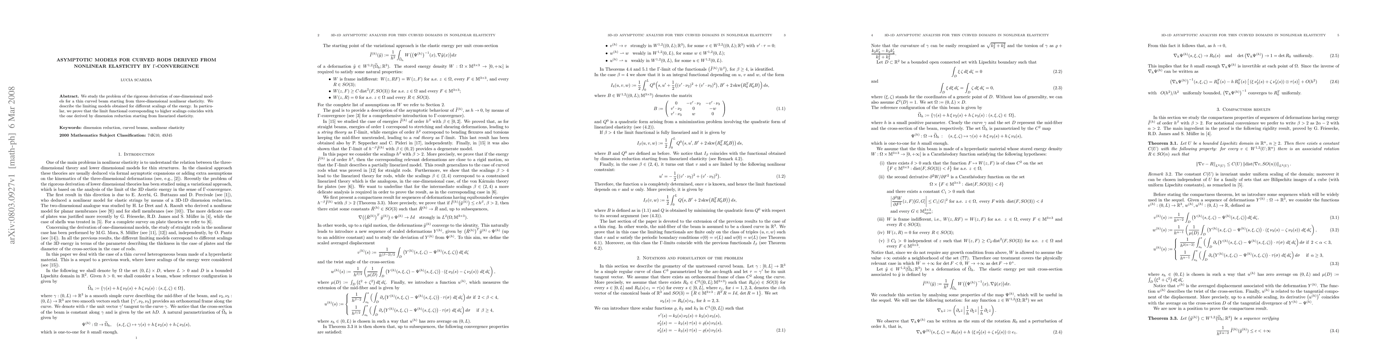 This paper rigorously derives one-dimensional models for thin curved beams from three-dimensional nonlinear elasticity using Gamma-convergence. It shows that higher scalings of the energy yield models consistent with those derived from linearized elasticity, and also examines thin elastic rings.