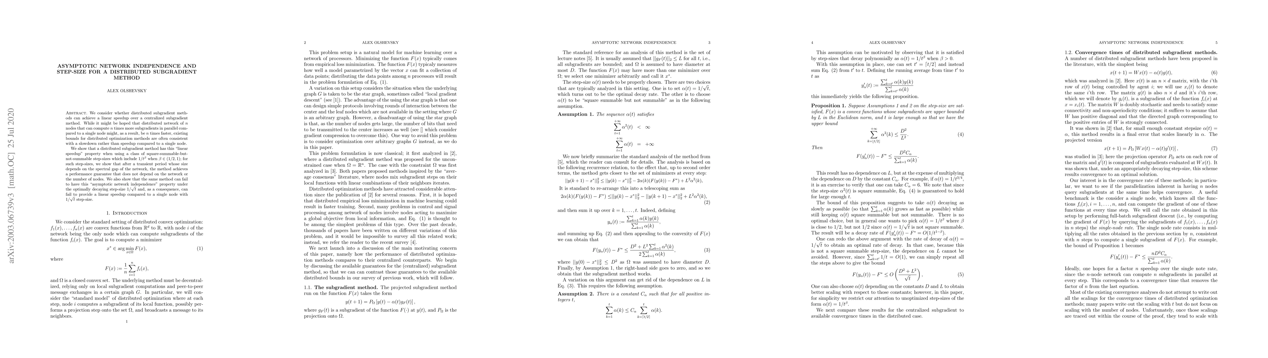 This paper investigates distributed subgradient methods and demonstrates that a linear speedup over centralized methods is achievable using specific step-sizes, specifically $1/t^{\beta}$ for $\beta \in (1/2,1)$. However, with the optimally decaying step-size $1/\sqrt{t}$, the method fails to achieve this speedup, highlighting the importance of step-size selection for performance.