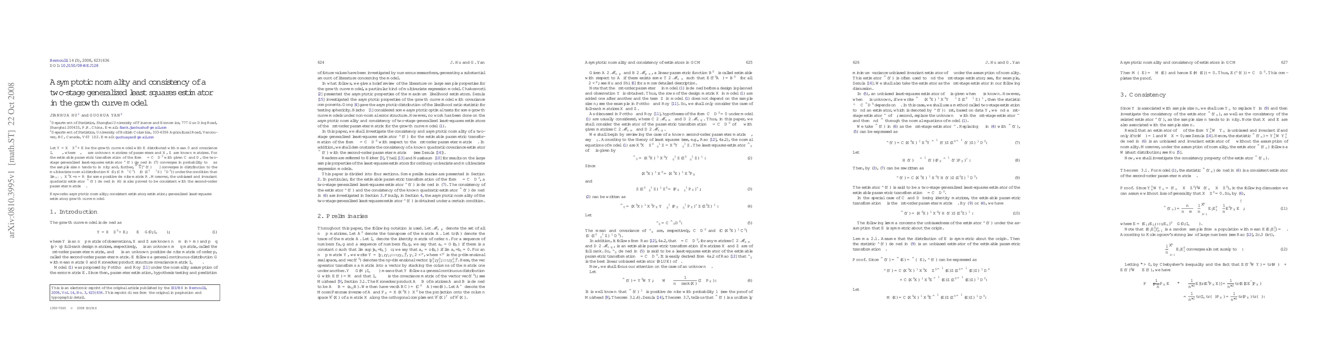 This paper investigates the asymptotic properties of a two-stage generalized least squares estimator in the growth curve model, proving its consistency and asymptotic normality. The estimator converges to the true parameter value and follows a multivariate normal distribution under certain conditions.