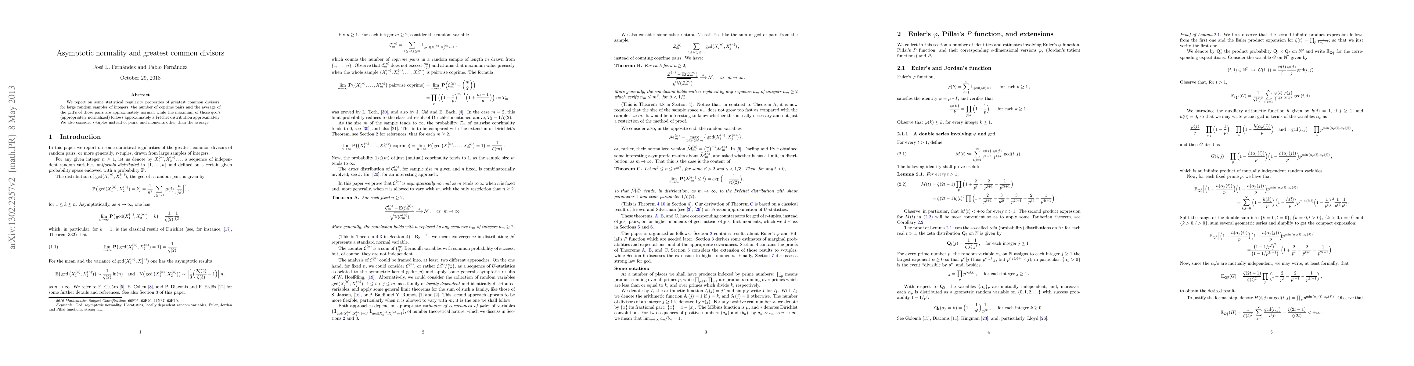 The paper introduces and proves asymptotic normality and Fréchet distribution properties for gcd's of large random samples, extending previous work to r-tuples and moments beyond the average.