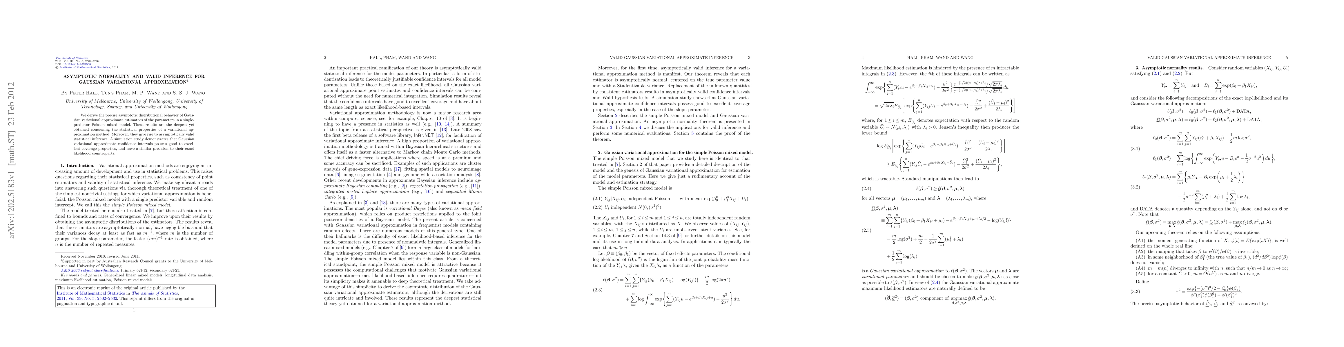 We derive the precise asymptotic distributional behavior of Gaussian variational approximate estimators of the parameters in a single-predictor Poisson mixed model. These results are the deepest yet obtained concerning the statistical properties of a variational approximation method. Moreover, they give rise to asymptotically valid statistical inference. A simulation study demonstrates that Gaussian variational approximate confidence intervals possess good to excellent coverage properties, and have a similar precision to their exact likelihood counterparts.