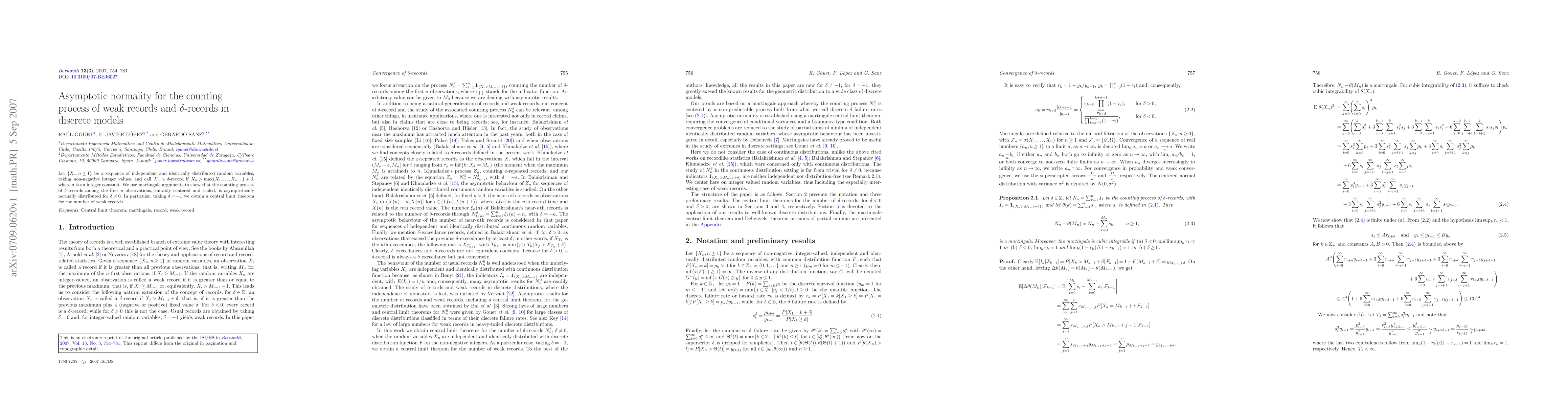 The counting process of weak records and θ-records in discrete models is asymptotically normally distributed for θ ¬ 0, offering a central limit theorem for the number of weak records.