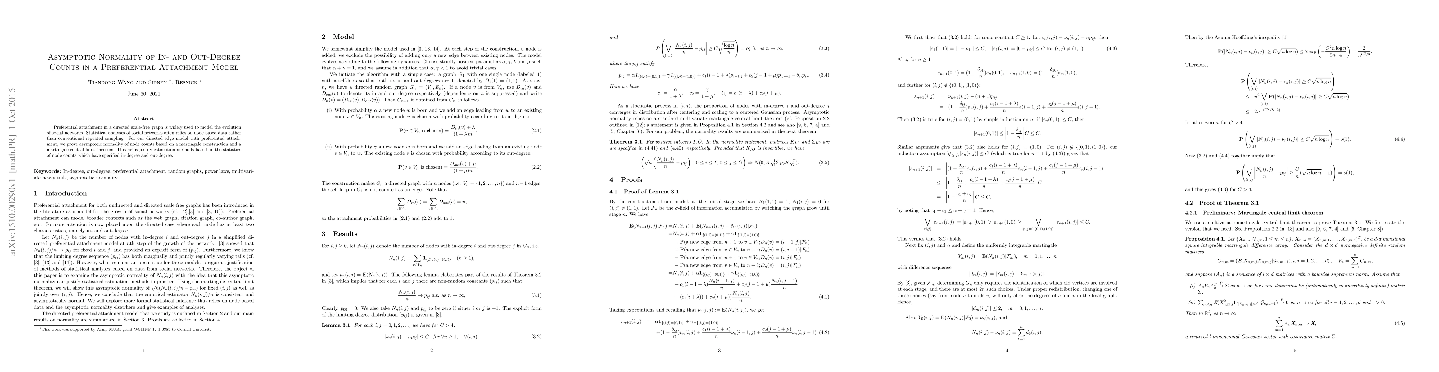 Preferential attachment in a directed scale-free graph is widely used to model the evolution of social networks. Statistical analyses of social networks often relies on node based data rather than conventional repeated sampling. For our directed edge model with preferential attachment, we prove asymptotic normality of node counts based on a martingale construction and a martingale central limit theorem. This helps justify estimation methods based on the statistics of node counts which have specified in-degree and out-degree.