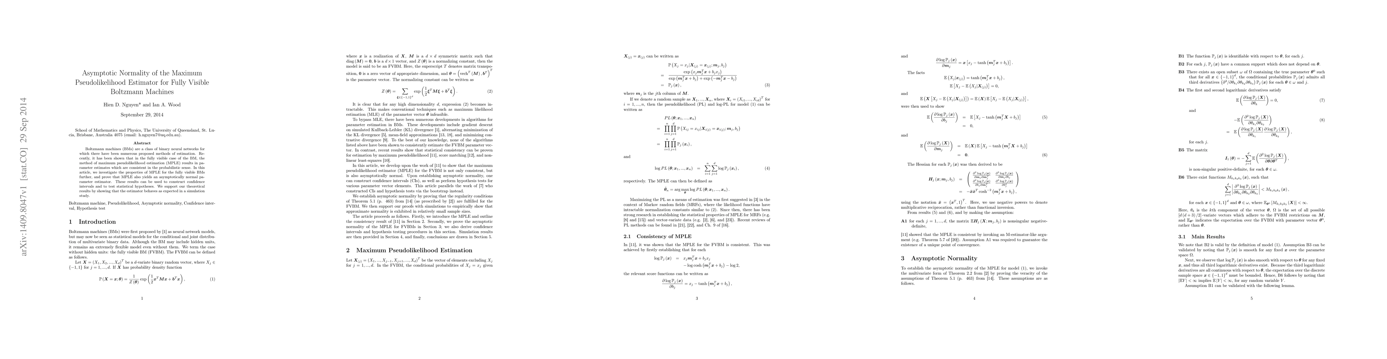 The maximum pseudolikelihood estimator (MPLE) for fully visible Boltzmann machines yields an asymptotically normal parameter estimator, enabling the construction of confidence intervals and hypothesis testing.