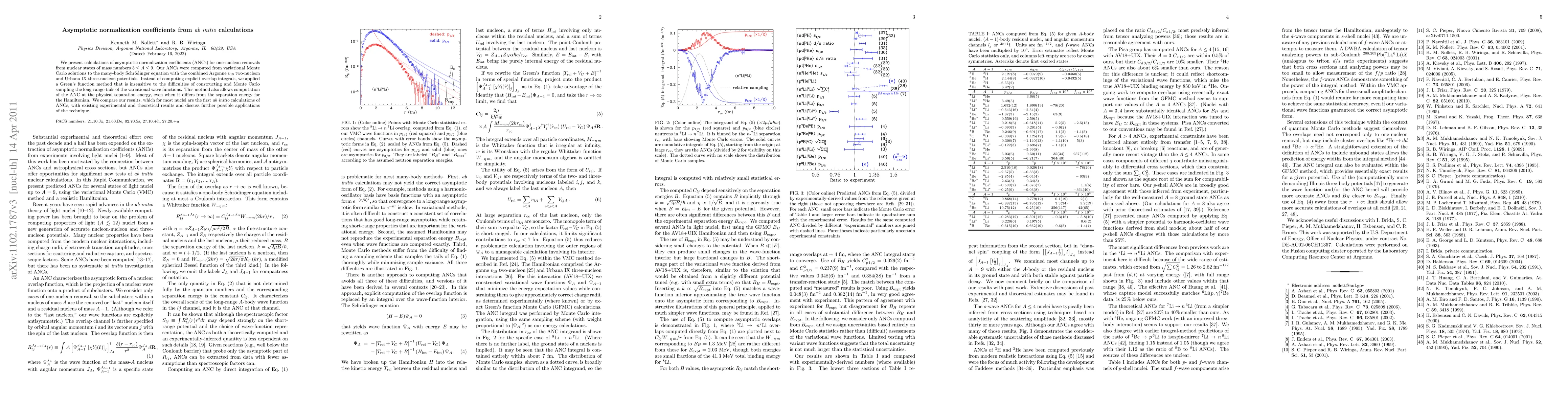 This paper reports ab initio calculations of asymptotic normalization coefficients (ANCs) for nucleon removals in light nuclei, employing a Green's function method to handle long-range wave function issues. The study compares new results with experimental and theoretical data, marking the first such calculations for most nuclei.