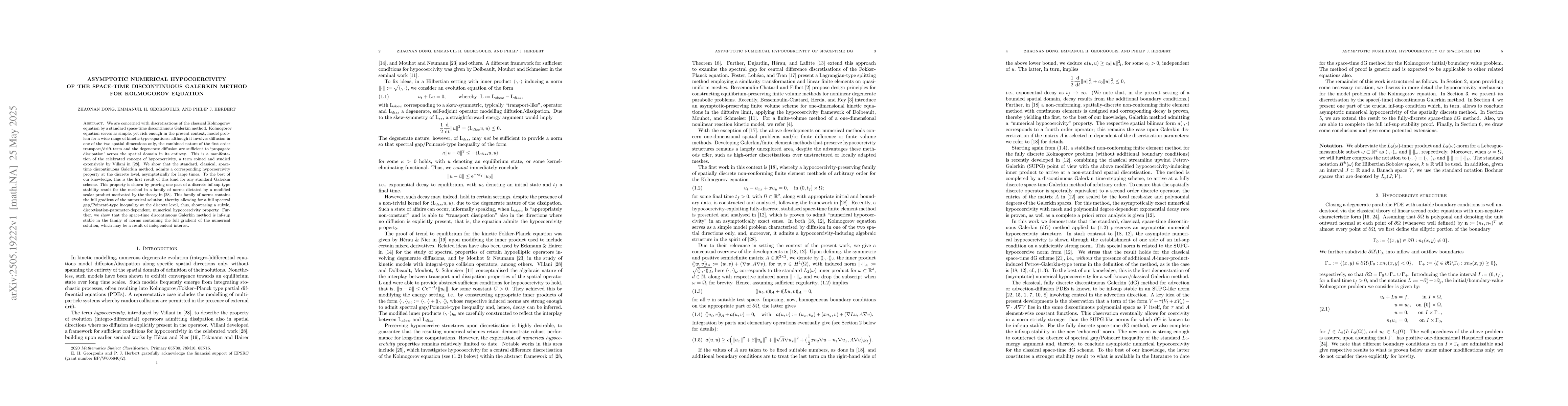 The research employs a standard space-time discontinuous Galerkin method to discretize the Kolmogorov equation, demonstrating asymptotic numerical hypocoercivity at large times.