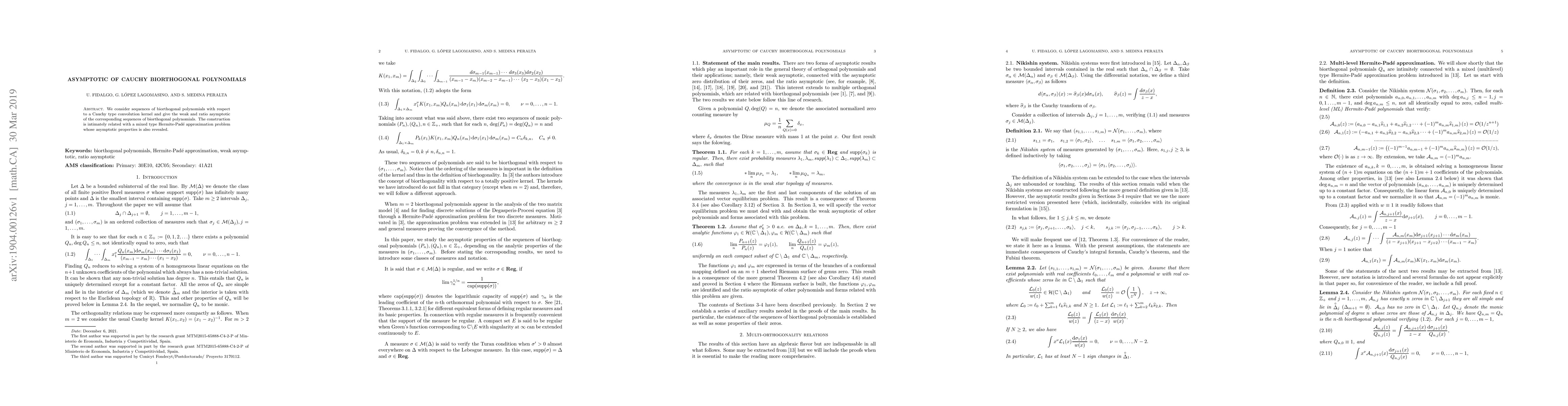 We consider sequences of biorthogonal polynomials with respect to a Cauchy type convolution kernel and give the weak and ratio asymptotic of the corresponding sequences of biorthogonal polynomials. The construction is intimately related with a mixed type Hermite-Pad\'e approximation problem whose asymptotic properties is also revealed.