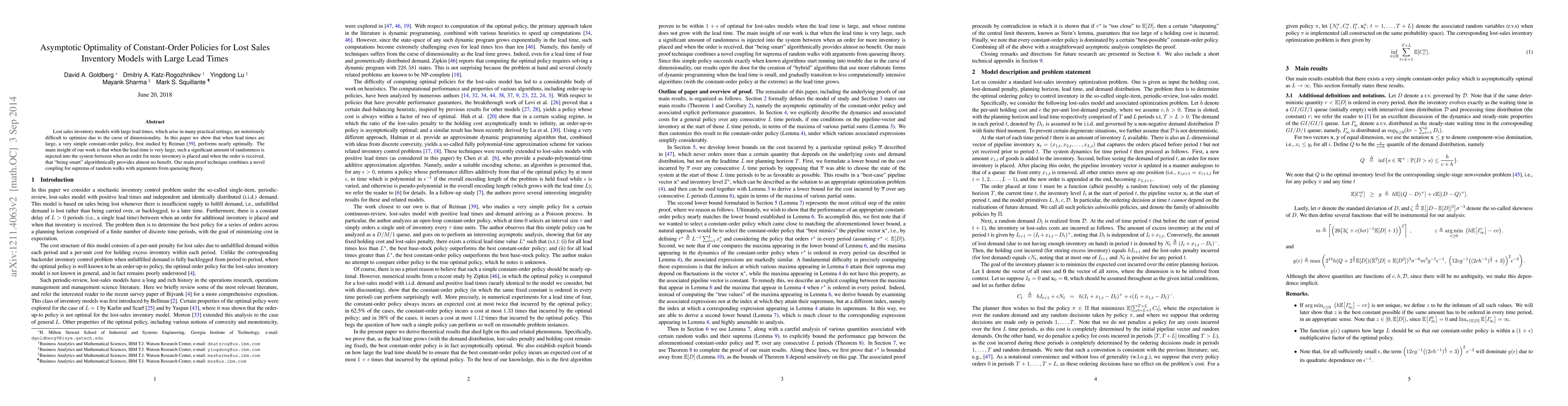 This paper demonstrates that simple constant-order policies are nearly optimal for lost sales inventory models with large lead times, despite the difficulty of optimization due to high dimensionality. The key insight is that extensive randomness in lead times negates the advantage of complex algorithms, supported by a novel coupling technique and queueing theory.