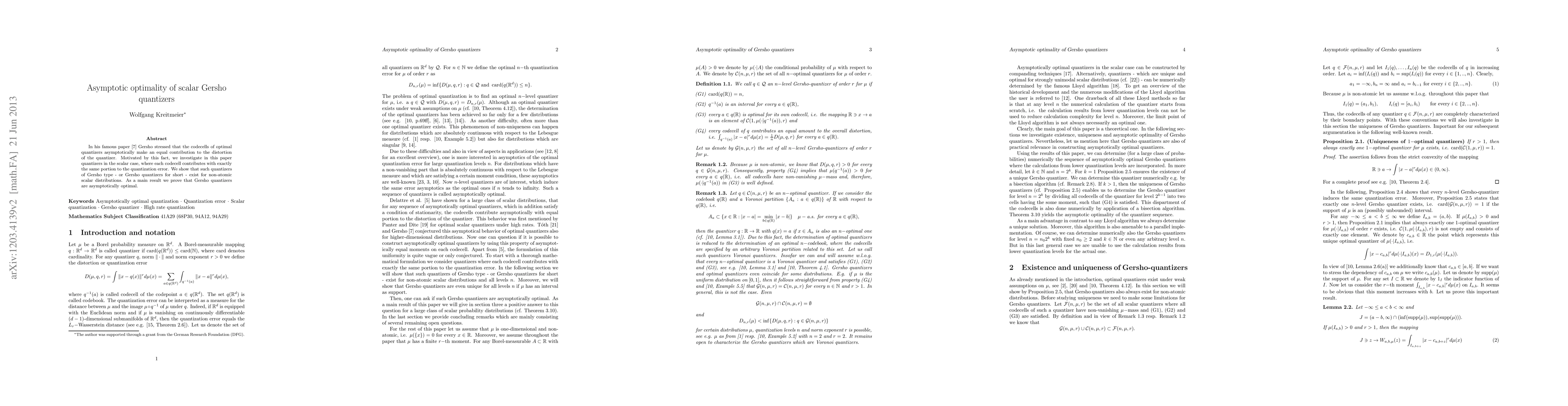 This paper investigates Gersho quantizers in the scalar case, showing they exist for non-atomic distributions and are asymptotically optimal, meaning their distortion contribution is equal among codecells.
