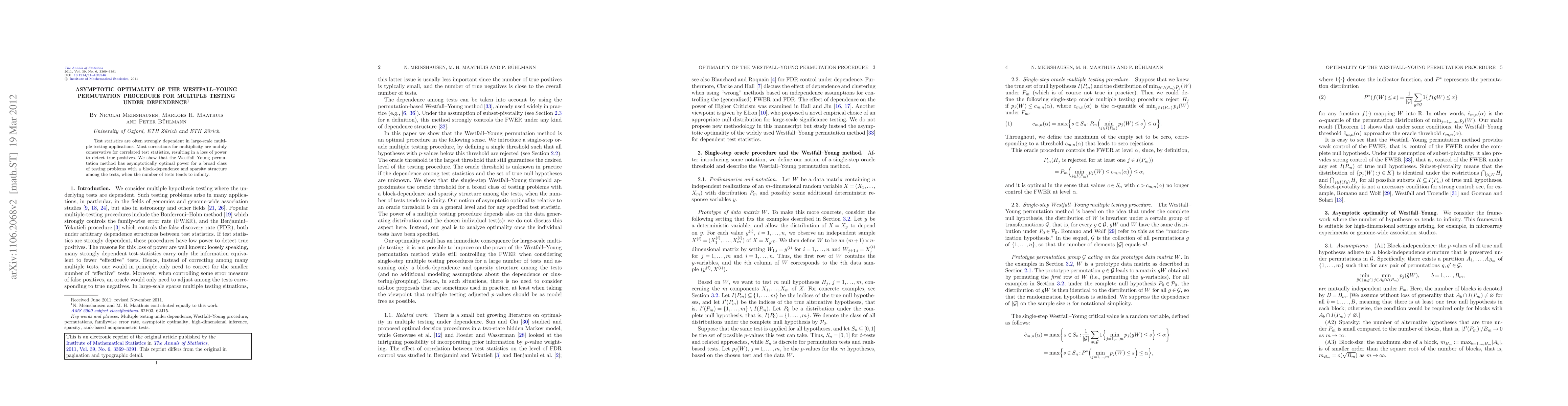 The Westfall-Young permutation procedure demonstrates asymptotically optimal power for multiple testing with dependent test statistics, overcoming the conservatism of traditional methods and enhancing the detection of true positives. This optimality holds under a broad class of testing problems characterized by block-dependence and sparsity.