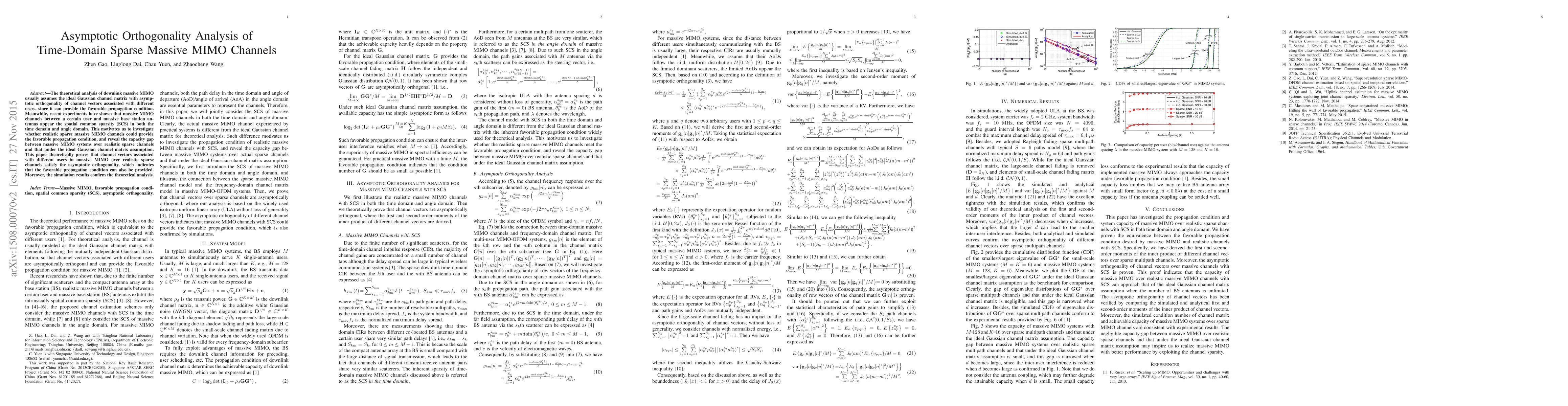 This paper investigates whether realistic sparse massive MIMO channels can provide favorable propagation conditions, proving that they exhibit asymptotic orthogonality. It reveals the capacity gap between systems using realistic sparse channels versus ideal Gaussian channels, confirming through simulations that the former still offers favorable propagation.