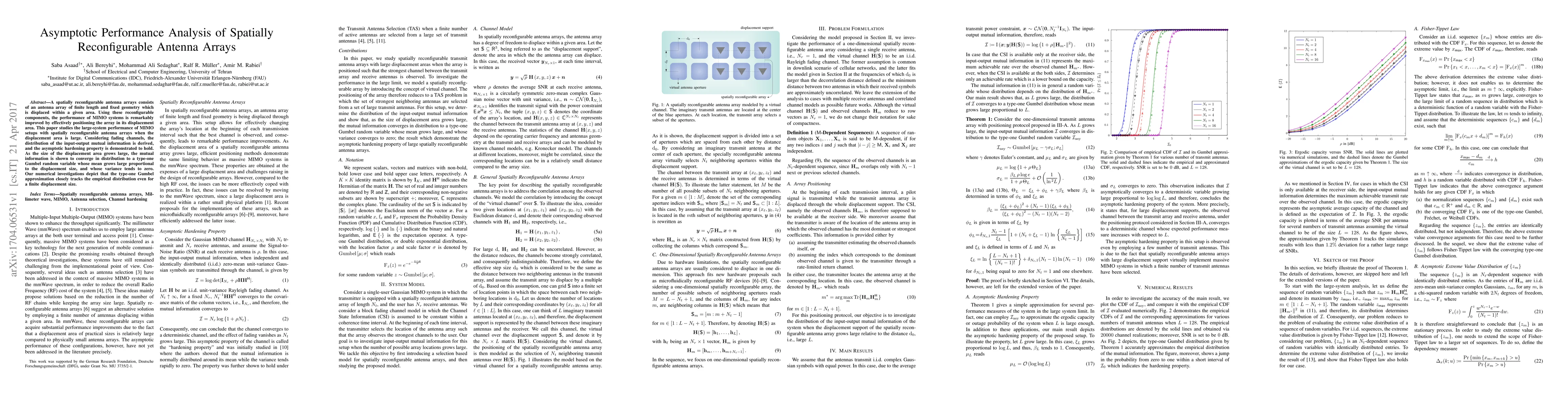 The paper introduces the concept of a virtual channel to model spatially reconfigurable antenna arrays and derives the asymptotic distribution of input-output mutual information for large-scale MIMO systems.