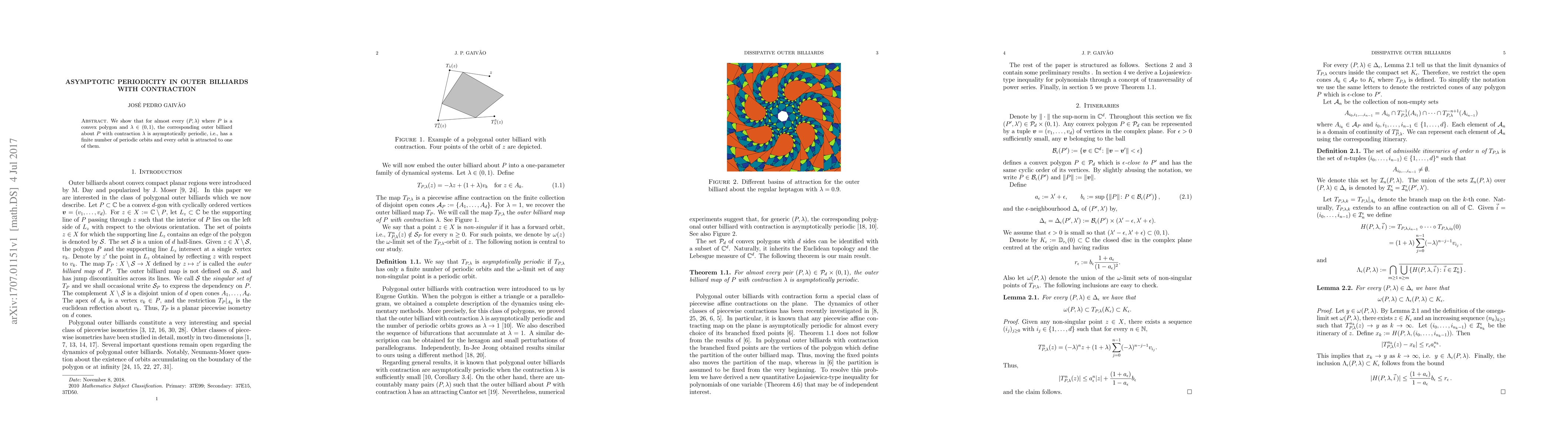 We show that for almost every $(P,\lambda)$ where $P$ is a convex polygon and $\lambda\in(0,1)$, the corresponding outer billiard about $P$ with contraction $\lambda$ is asymptotically periodic, i.e., has a finite number of periodic orbits and every orbit is attracted to one of them.