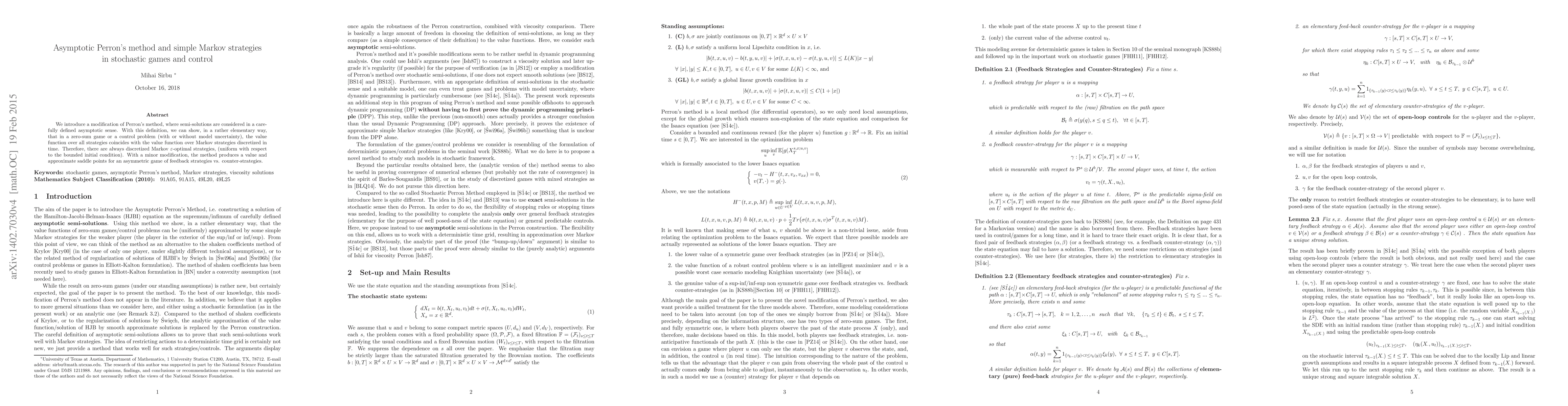 This paper modifies Perron's method to consider semi-solutions in an asymptotic sense, demonstrating that in zero-sum games or stochastic control problems, the value function derived from all strategies matches that from discretized Markov strategies. It also shows the existence of discretized Markov $\varepsilon$-optimal strategies and extends the method to asymmetric games for value and saddle point approximation.