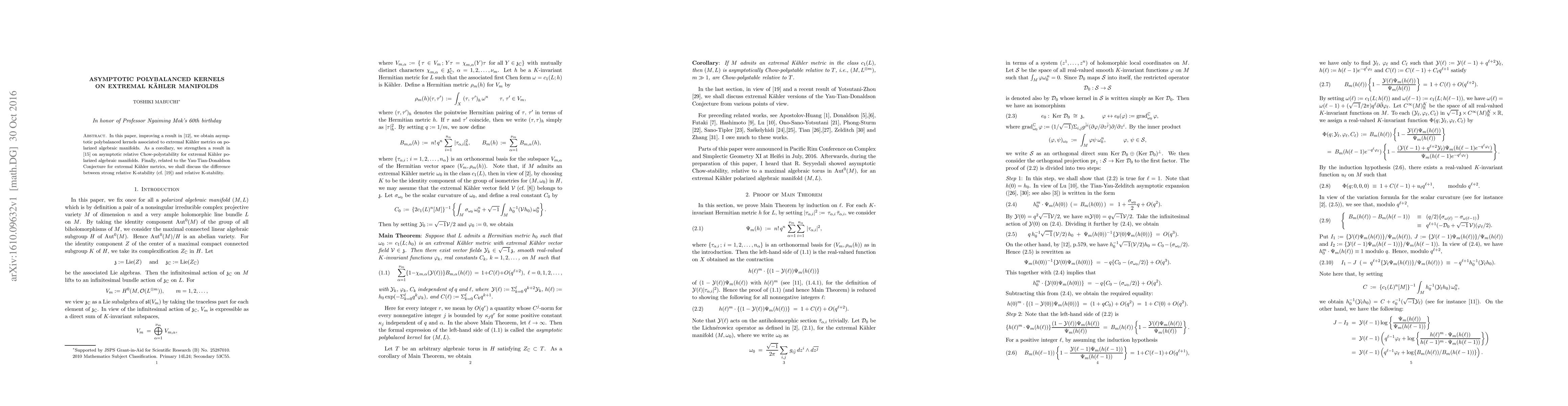 In this paper, improving a preceding work, we obtain asymptotic polybalanced kernels associated to extremal Kaehler metrics on polarized algebraic manifolds. As a corollary, we have a stronger asymptotic relative Chow-polystability for extremal Kaehler polarized algebraic manifolds. Finally, related to the Yau-Tian-Donaldson Conjecture for extremal Kaehler metrics, we shall discuss the difference between strong relative K-stability and relative K-stability.