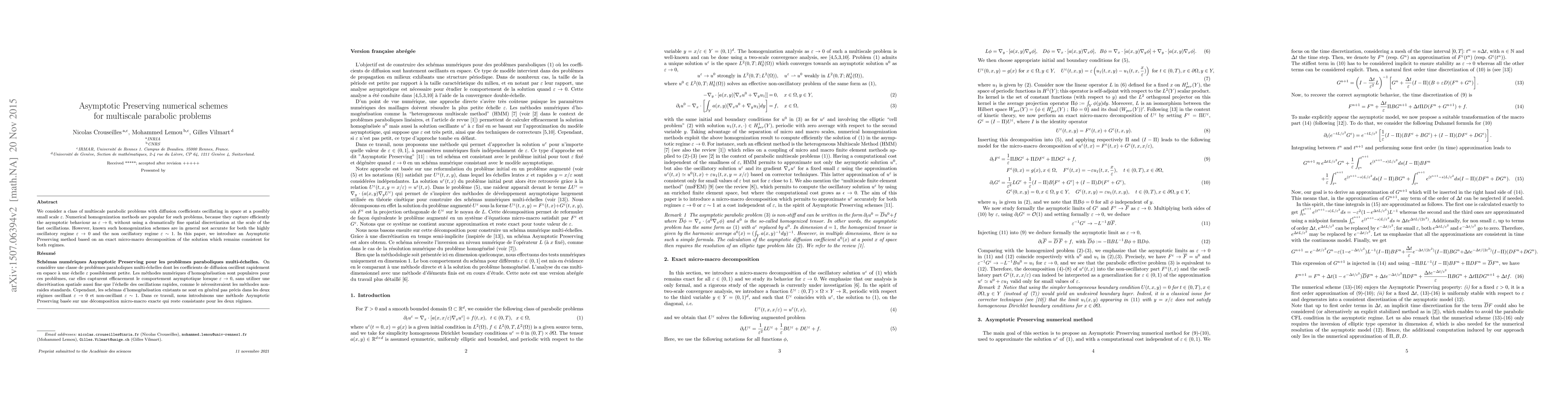 This paper introduces an Asymptotic Preserving numerical scheme for multiscale parabolic problems with oscillating diffusion coefficients. The proposed method accurately captures the asymptotic behavior in both the highly oscillatory and non-oscillatory regimes without requiring fine spatial discretization.