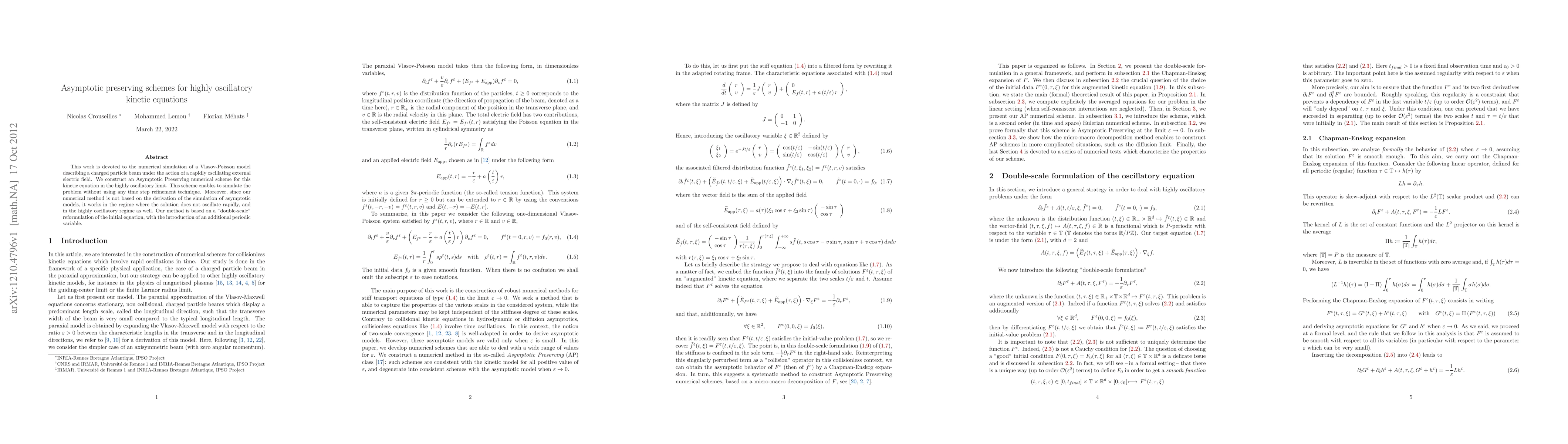 This work is devoted to the numerical simulation of a Vlasov-Poisson model describing a charged particle beam under the action of a rapidly oscillating external electric field. We construct an Asymptotic Preserving numerical scheme for this kinetic equation in the highly oscillatory limit. This scheme enables to simulate the problem without using any time step refinement technique. Moreover, since our numerical method is not based on the derivation of the simulation of asymptotic models, it works in the regime where the solution does not oscillate rapidly, and in the highly oscillatory regime as well. Our method is based on a "double-scale" reformulation of the initial equation, with the introduction of an additional periodic variable.