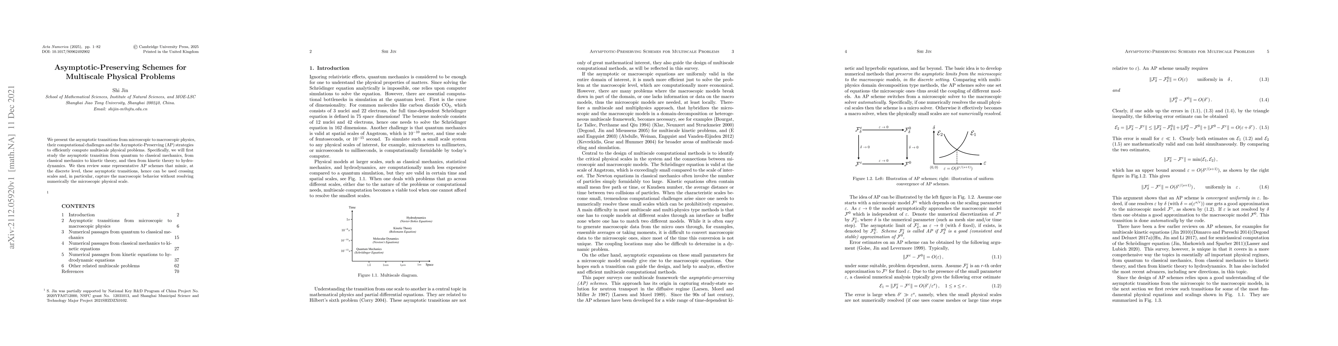 This paper explores asymptotic transitions from microscopic to macroscopic physics and introduces Asymptotic-Preserving (AP) strategies to efficiently compute multiscale physical problems, focusing on transitions from quantum to classical mechanics, classical mechanics to kinetic theory, and kinetic theory to hydrodynamics. AP schemes are reviewed for their ability to capture macroscopic behavior without resolving microscopic scales numerically.