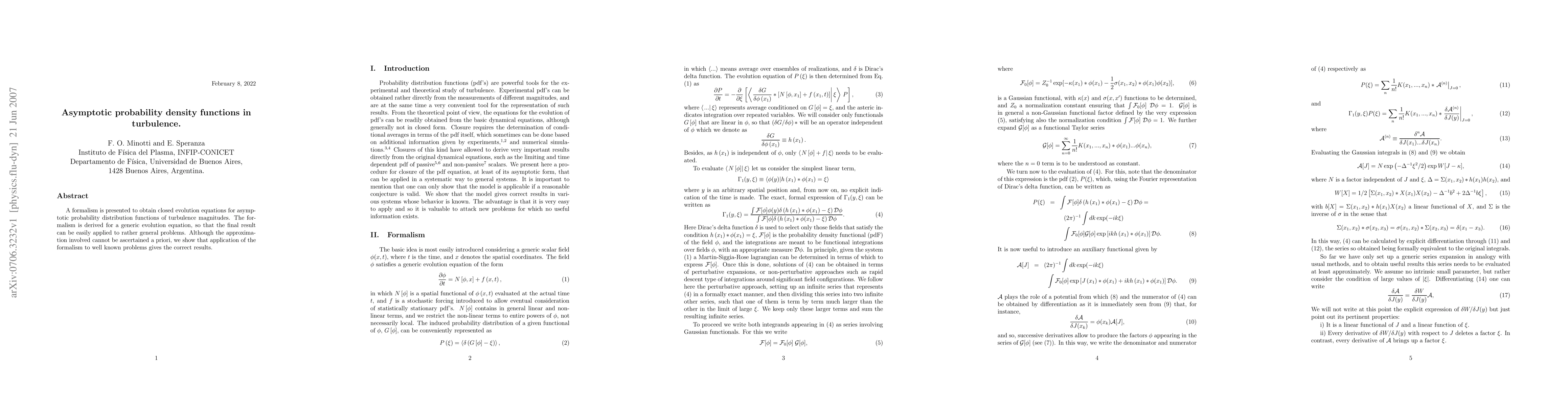 A formalism is presented to obtain closed evolution equations for asymptotic probability distribution functions of turbulence magnitudes. The formalism is derived for a generic evolution equation, so that the final result can be easily applied to rather general problems. Although the approximation involved cannot be ascertained a priori, we show that application of the formalism to well known problems gives the correct results.