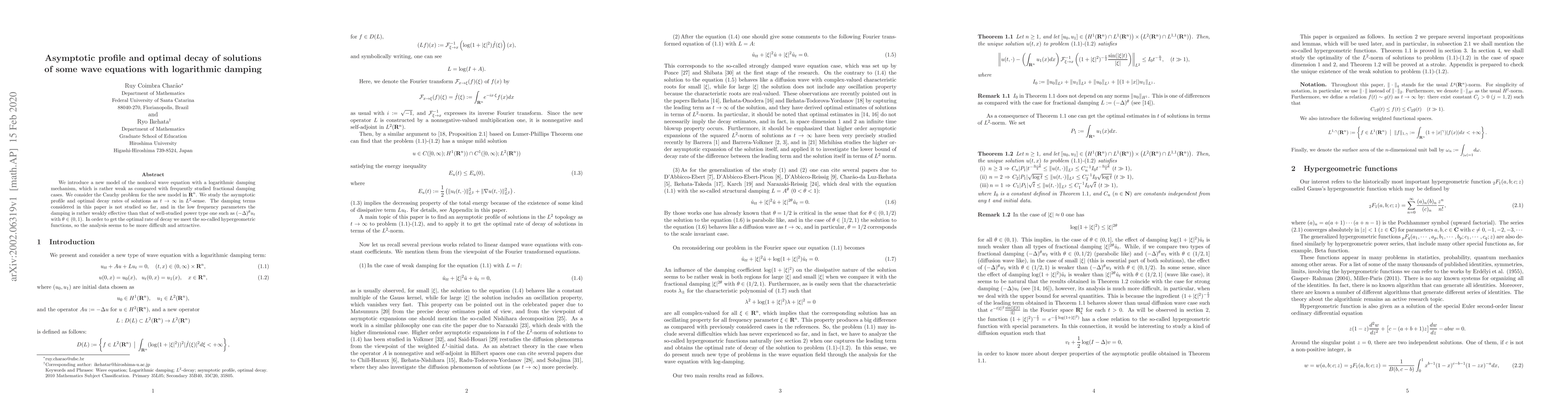 We introduce a new model of the nonlocal wave equations with a logarithmic damping mechanism. We consider the Cauchy poroblem for the new model in the whole space. We study the asymptotic profile and optimal decay and blowup rates of solutions as time goes to infinity. The damping terms considered in this paper is not studied so far, and in the low frequency parameters the damping is rather weakly effective than that of well-studied fractional type of nonlocal damping. In order to get the optimal estimates in time we meet the so-called hypergeometric functions with special parameters.
