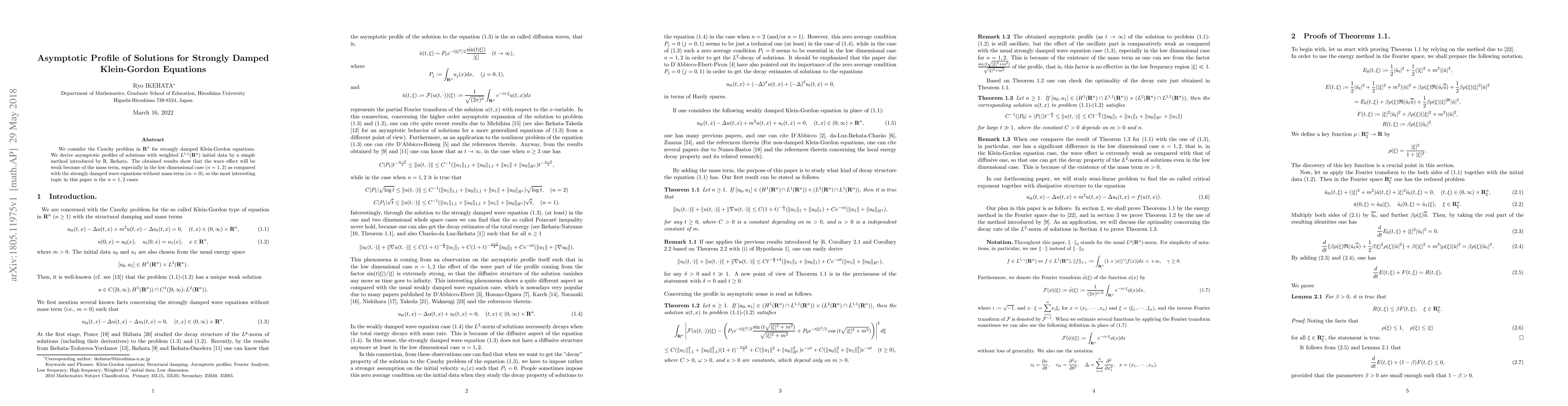 This paper investigates the asymptotic behavior of solutions for strongly damped Klein-Gordon equations in the whole space, deriving profiles using a method by R. Ikehata. The study highlights that the mass term weakens wave effects, particularly in low dimensions (n=1,2), making these cases the focus of the research.