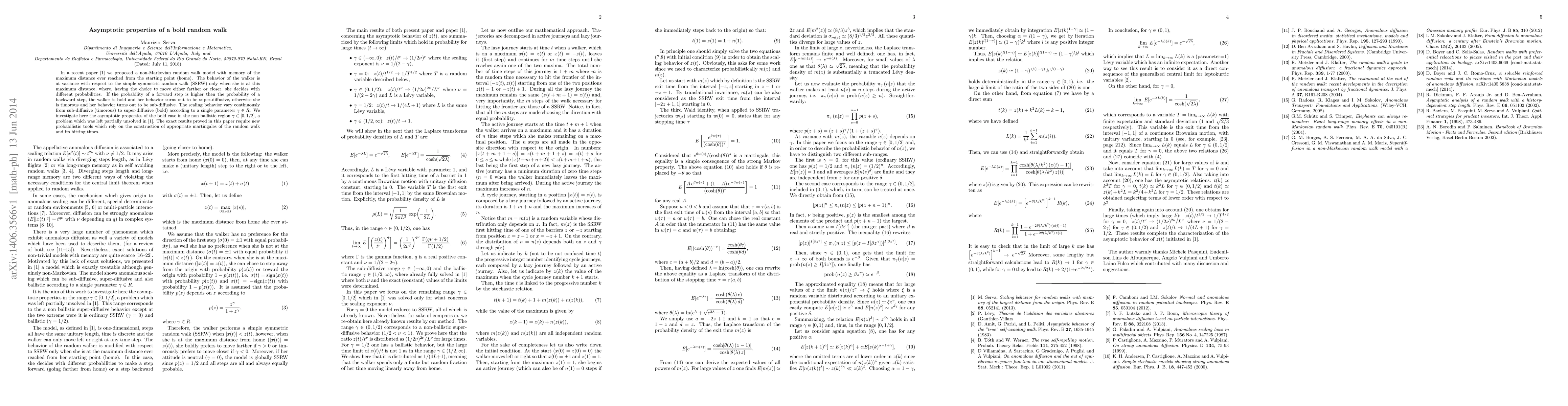 In a recent paper we proposed a non-Markovian random walk model with memory of the maximum distance ever reached from the starting point (home). The behavior of the walker is at variance with respect to the simple symmetric random walk (SSRW) only when she is at this maximum distance, where, having the choice to move either farther or closer, she decides with different probabilities. If the probability of a forward step is higher then the probability of a backward step, the walker is bold and her behavior turns out to be super-diffusive, otherwise she is timorous and her behavior turns out to be sub-diffusive. The scaling behavior vary continuously from sub-diffusive (timorous) to super-diffusive (bold) according to a single parameter $\gamma \in R$. We investigate here the asymptotic properties of the bold case in the non ballistic region $\gamma \in [0,1/2]$, a problem which was left partially unsolved in \cite{S}. The exact results proved in this paper require new probabilistic tools which rely on the construction of appropriate martingales of the random walk and its hitting times.