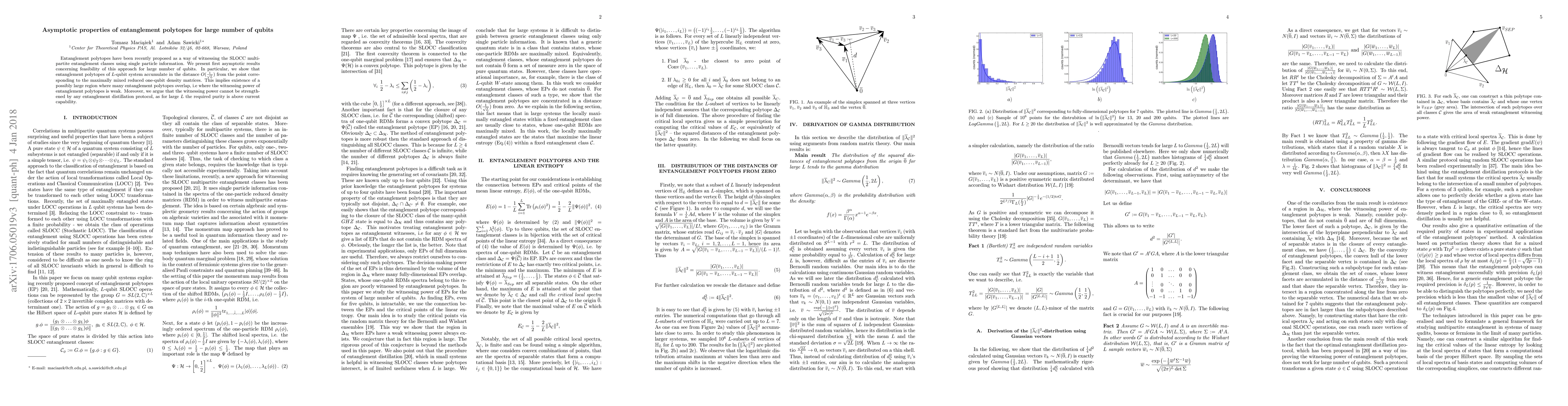 Entanglement polytopes have been recently proposed as the way of witnessing the SLOCC multipartite entanglement classes using single particle information. We present first asymptotic results concerning feasibility of this approach for large number of qubits. In particular we show that entanglement polytopes of $L$-qubit system accumulate in the distance $\frac{1}{2\sqrt{L}}$ from the point corresponding to the maximally mixed reduced one-qubit density matrices. This implies existence of a possibly large region where many entanglement polytopes overlap, i.e where the witnessing power of entanglement polytopes is weak. Moreover, the witnessing power cannot be strengthened by any entanglement distillation protocol as for large $L$ the required purity is above current capability.