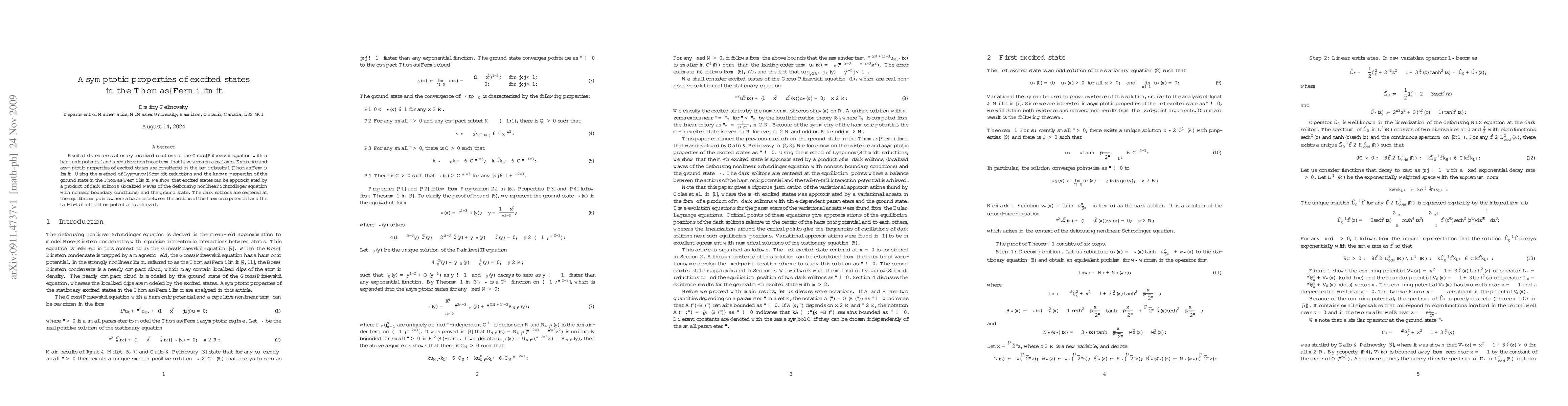 This paper investigates the asymptotic properties of excited states in the Thomas-Fermi limit, showing that these states can be approximated by a combination of dark solitons and the ground state. The analysis employs Lyapunov-Schmidt reductions to demonstrate the existence and behavior of these localized solutions.
