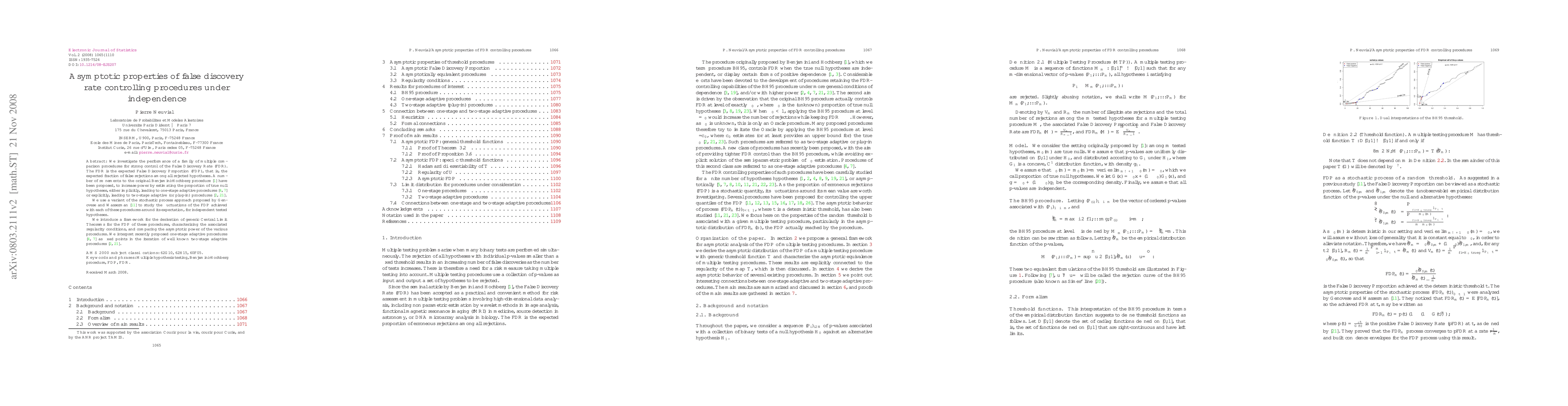 This paper examines the asymptotic properties of multiple comparison procedures designed to control the False Discovery Rate (FDR) under independence. It introduces a framework for deriving Central Limit Theorems for the fluctuations of FDR and compares the asymptotic power of various adaptive procedures.
