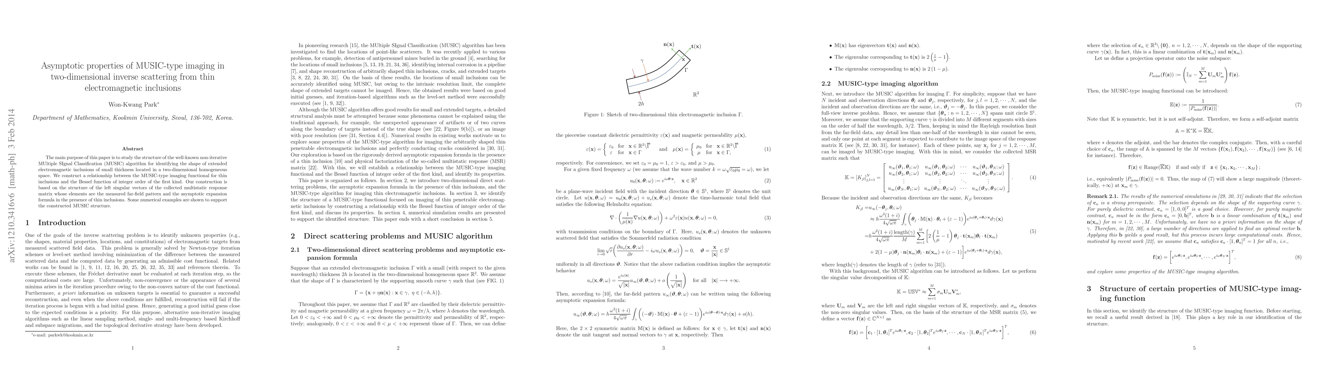 Researchers developed a new method to analyze electromagnetic inclusions using the MUSIC algorithm, revealing a connection between the MUSIC function and Bessel functions, which can help identify thin inclusions with high accuracy.