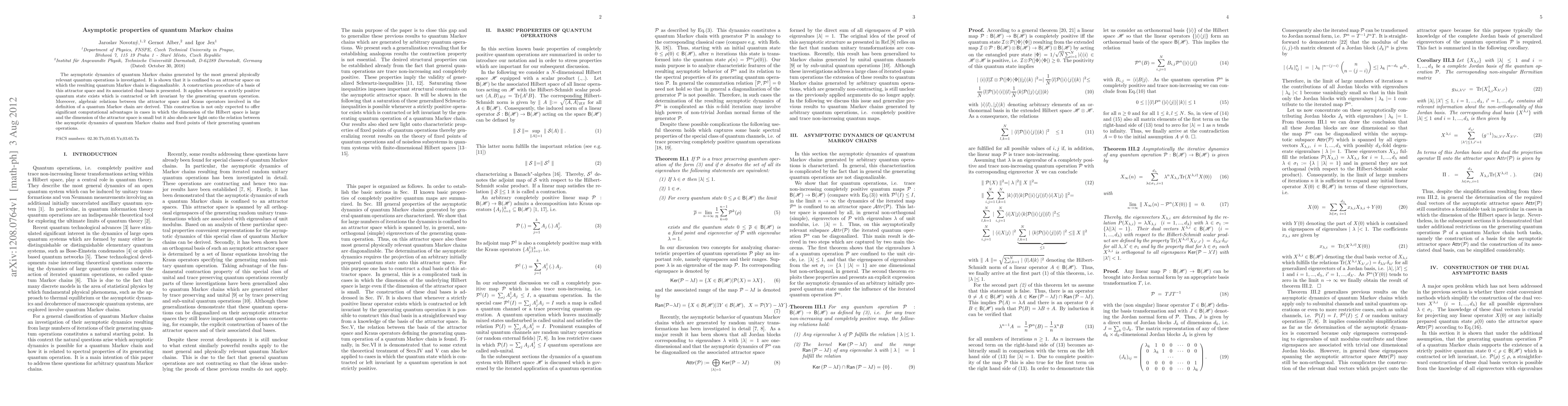 This paper investigates the asymptotic dynamics of quantum Markov chains, demonstrating that they converge to a diagonalizable attractor space. It provides a method for constructing bases of this attractor space and reveals algebraic connections between the attractor space and Kraus operators, offering computational benefits and insights into the dynamics' relation to fixed points of quantum operations.