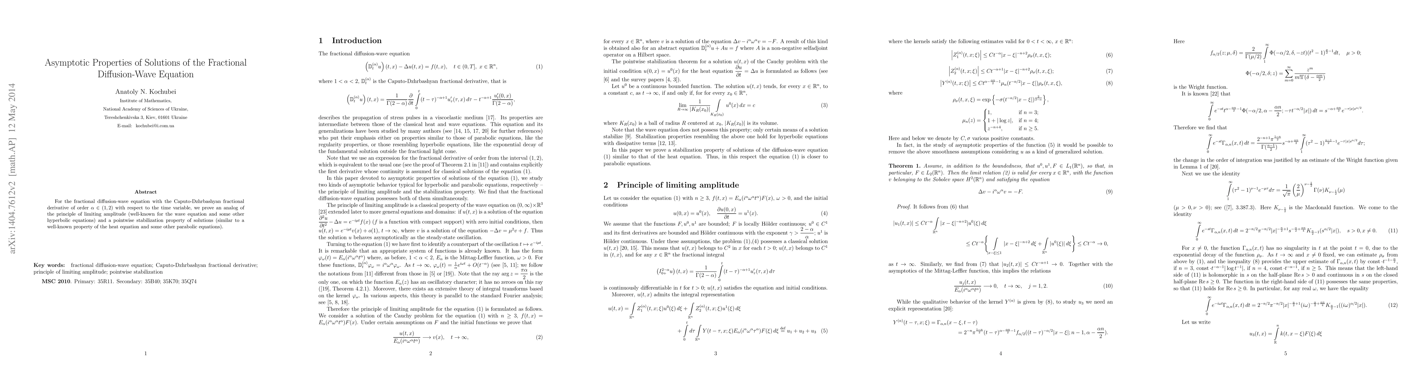 This paper proves an analog of the principle of limiting amplitude and a pointwise stabilization property for solutions of the fractional diffusion-wave equation using the Caputo-Dzhrbashyan fractional derivative. These findings extend well-known properties from classical wave and heat equations to their fractional counterparts.