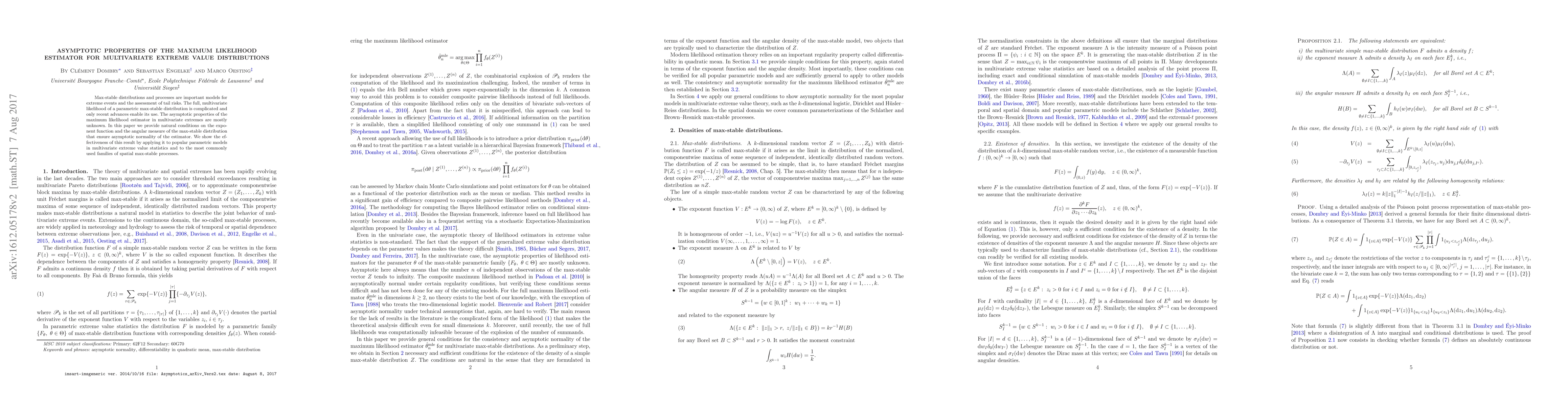 This paper investigates the asymptotic properties of the maximum likelihood estimator for multivariate extreme value distributions, providing conditions for its asymptotic normality. The study applies these findings to popular parametric models and commonly used spatial max-stable processes, demonstrating their effectiveness.