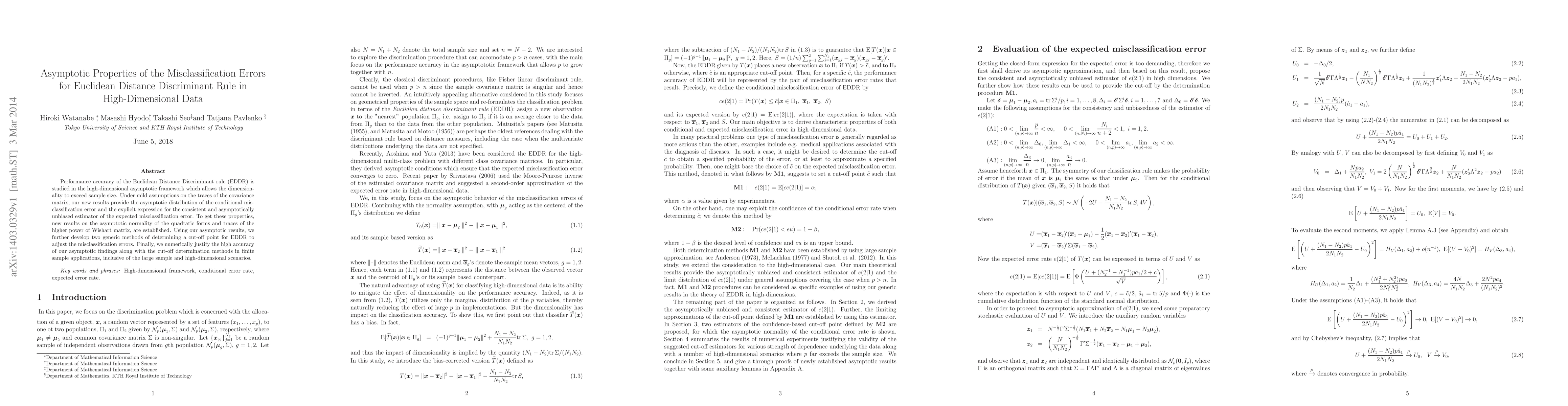 This paper investigates the asymptotic properties of the Euclidean Distance Discriminant Rule (EDDR) in high-dimensional settings where dimensions surpass sample sizes. It provides the asymptotic distribution of the conditional misclassification error and develops methods to determine a cut-off point for EDDR, validated through numerical simulations.