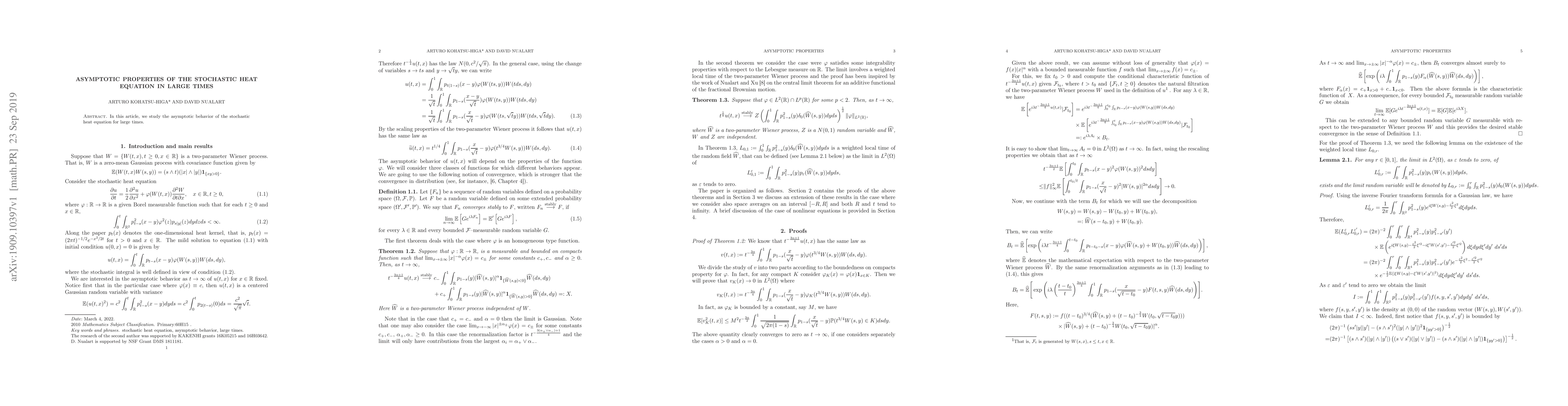 In this article, we study the asymptotic behavior of the stochastic heat equation for large times.