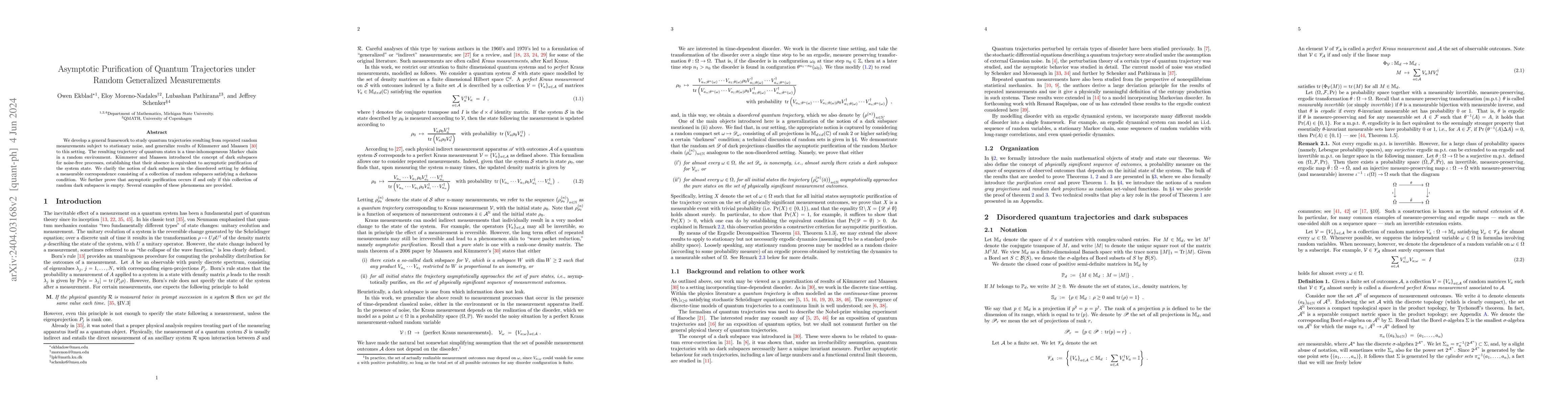 This paper develops a framework to study quantum trajectories under random generalized measurements in the presence of stationary noise, extending Kümmerer and Maassen's results. It defines a collection of random dark subspaces, proving that asymptotic purification of the quantum state occurs if and only if this collection is empty.