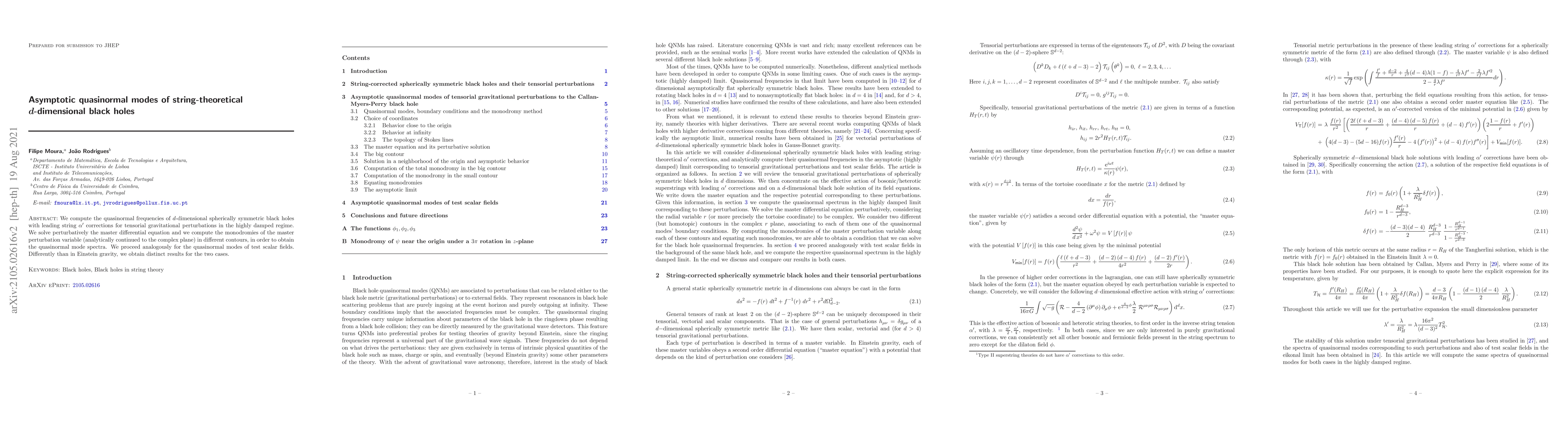 This paper computes the quasinormal frequencies of $d$-dimensional black holes with string theory corrections for tensorial gravitational perturbations and test scalar fields, finding distinct results for each type of perturbation in the highly damped regime. The study employs perturbative methods to solve the master differential equation and computes the monodromies of the master perturbation variable.