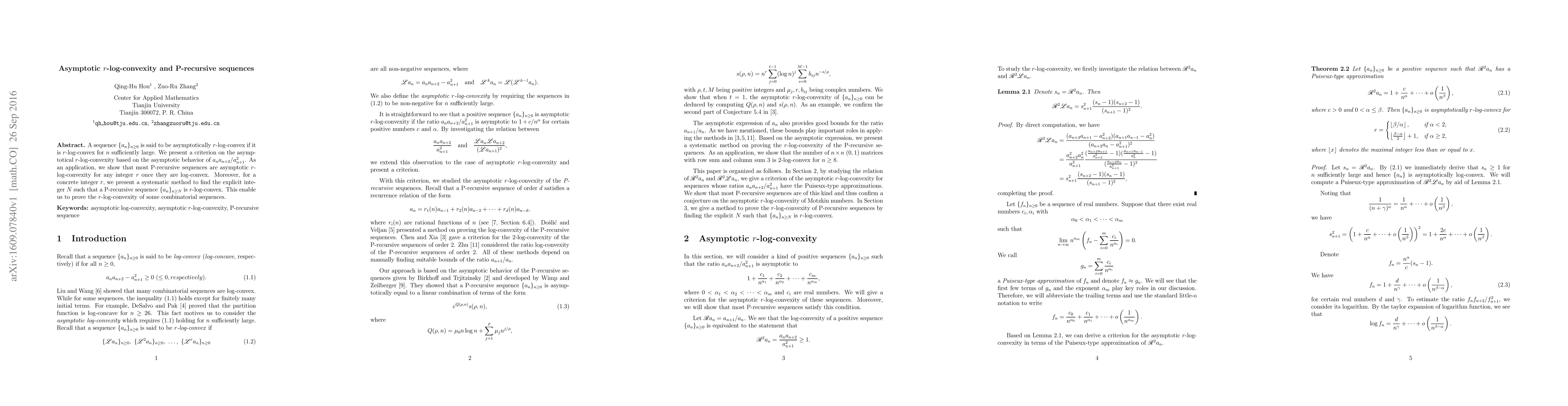 The paper presents a criterion for asymptotic $r$-log-convexity in sequences, showing that most P-recursive sequences exhibit this property when they are log-convex. It also provides a method to determine the explicit integer $N$ ensuring $r$-log-convexity for specific integer $r$.